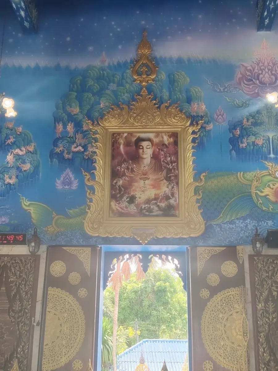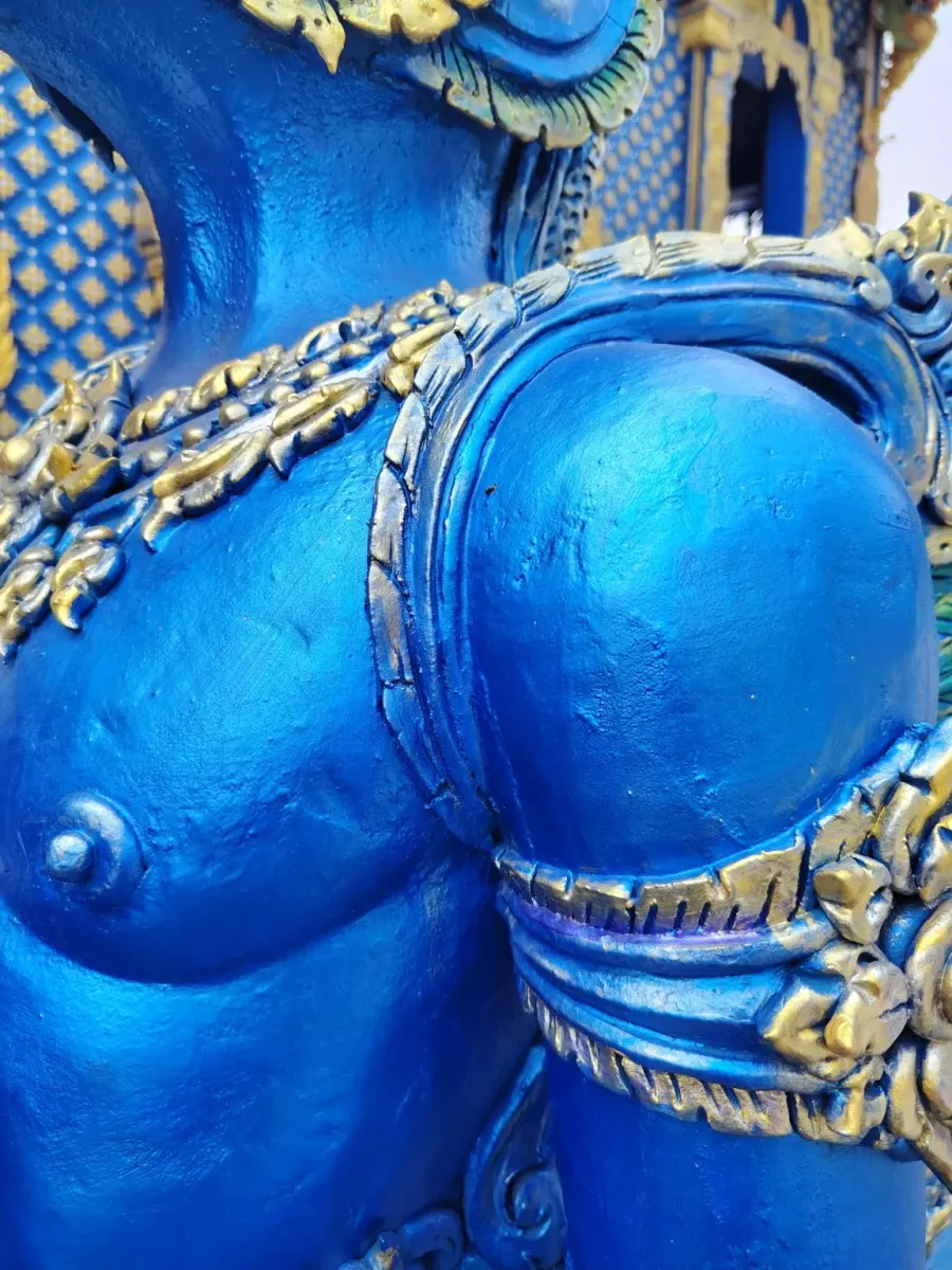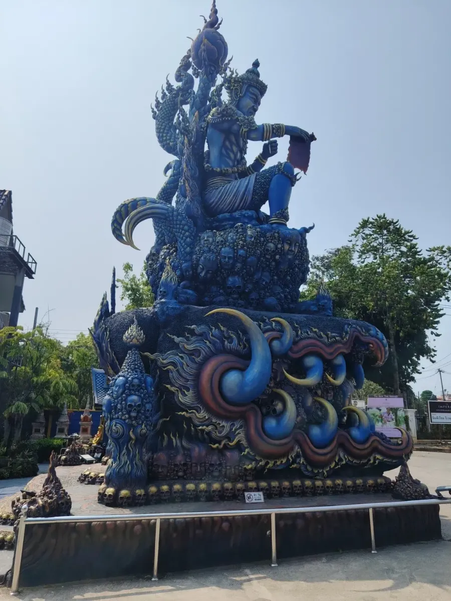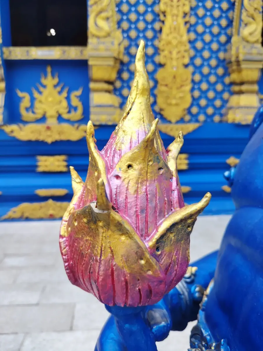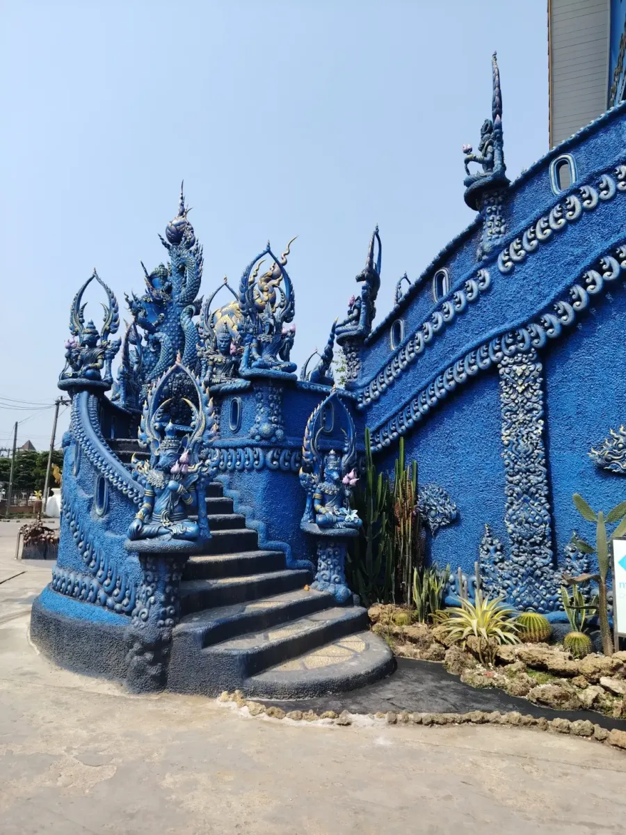 This is not the first temple in Northern Thailand whose interior walls are decorated with beautiful paintings depicting scenes from the life of Buddha. Outside, extremely beautiful blue statues guard the peace of the temple, so this trip also became an art exhibition.