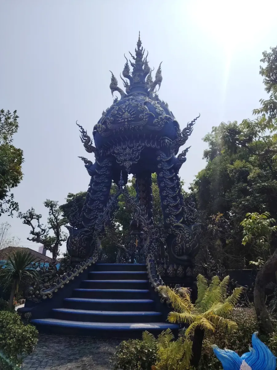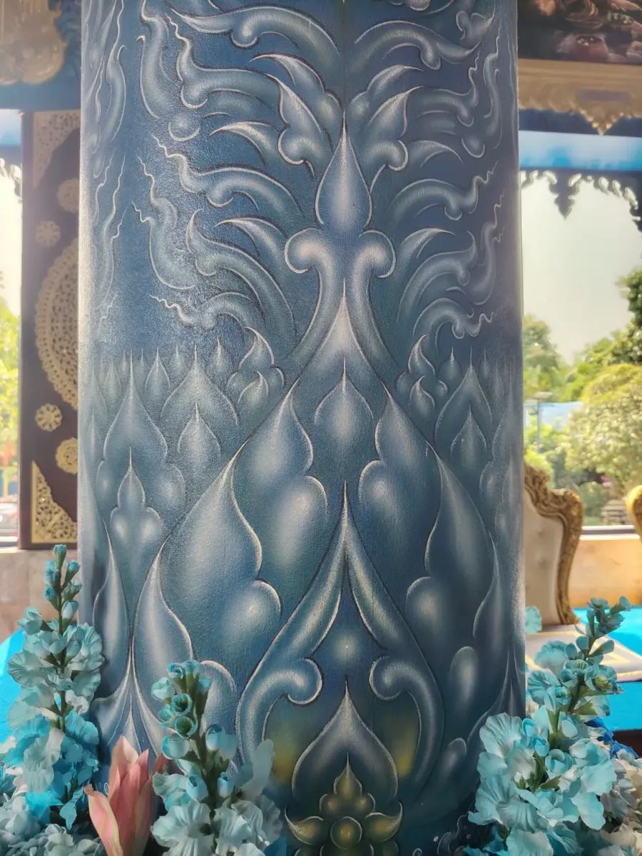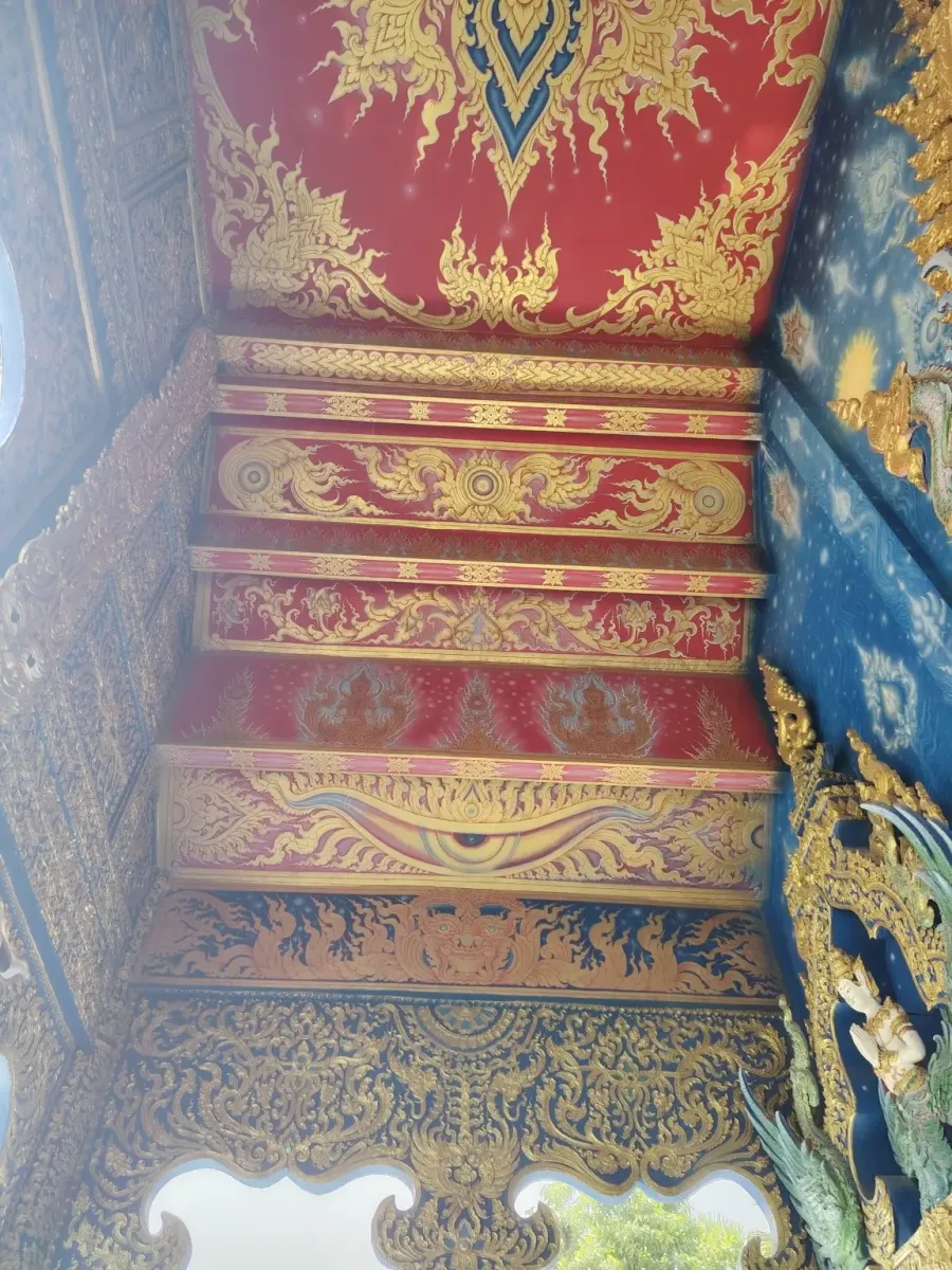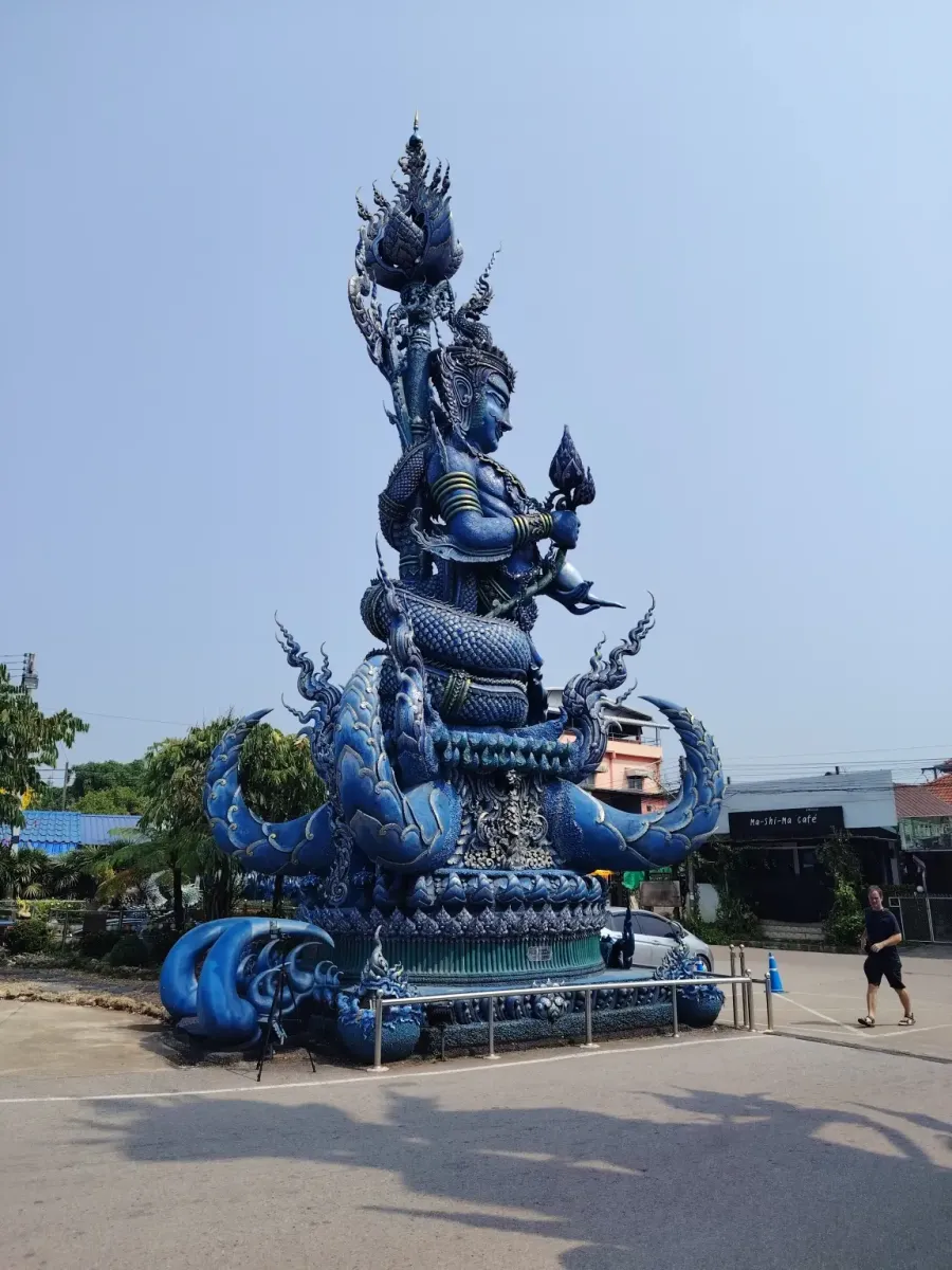 This is not the first temple in Northern Thailand whose interior walls are decorated with beautiful paintings depicting scenes from the life of Buddha. Outside, extremely beautiful blue statues guard the peace of the temple, so this trip also became an art exhibition.