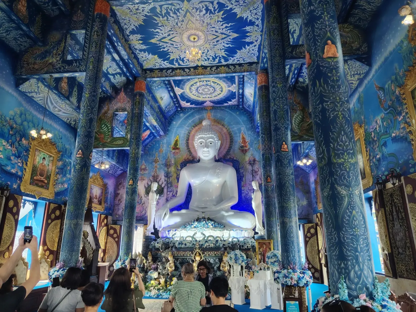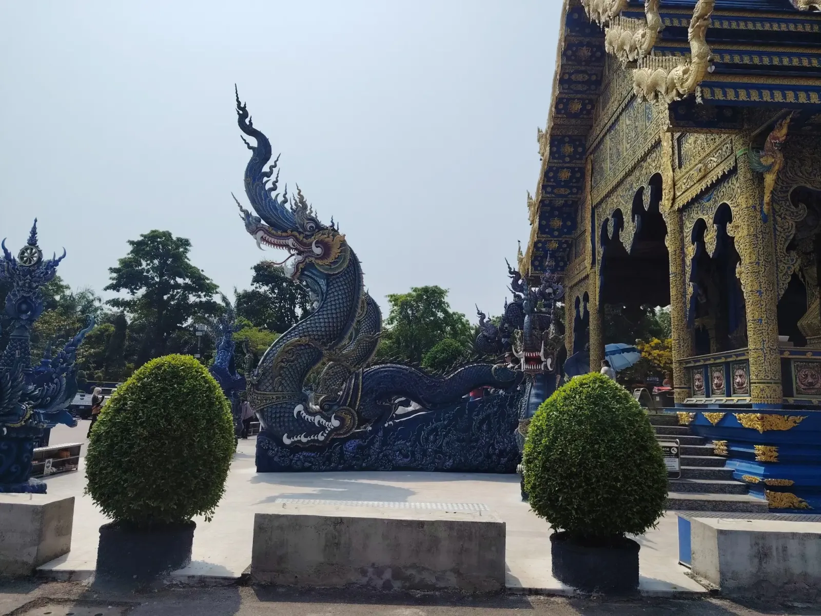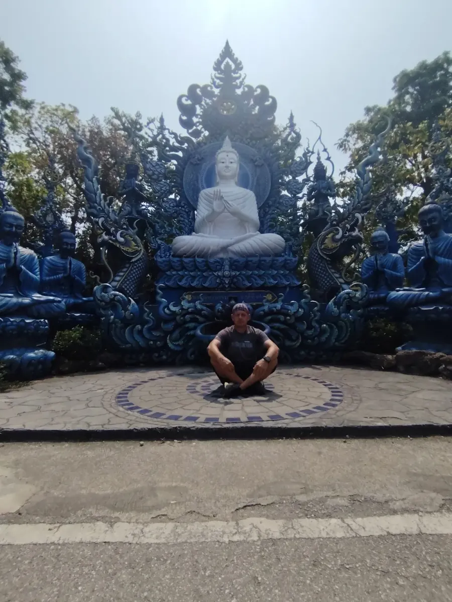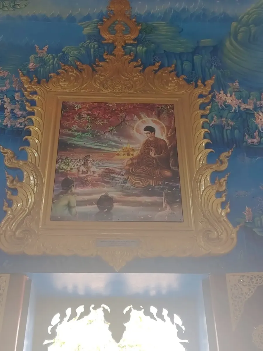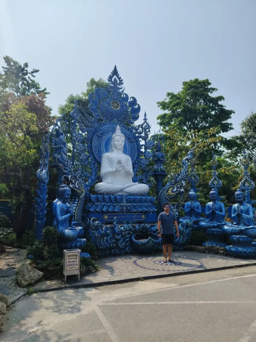 This is not the first temple in Northern Thailand whose interior walls are decorated with beautiful paintings depicting scenes from the life of Buddha. Outside, extremely beautiful blue statues guard the peace of the temple, so this trip also became an art exhibition.