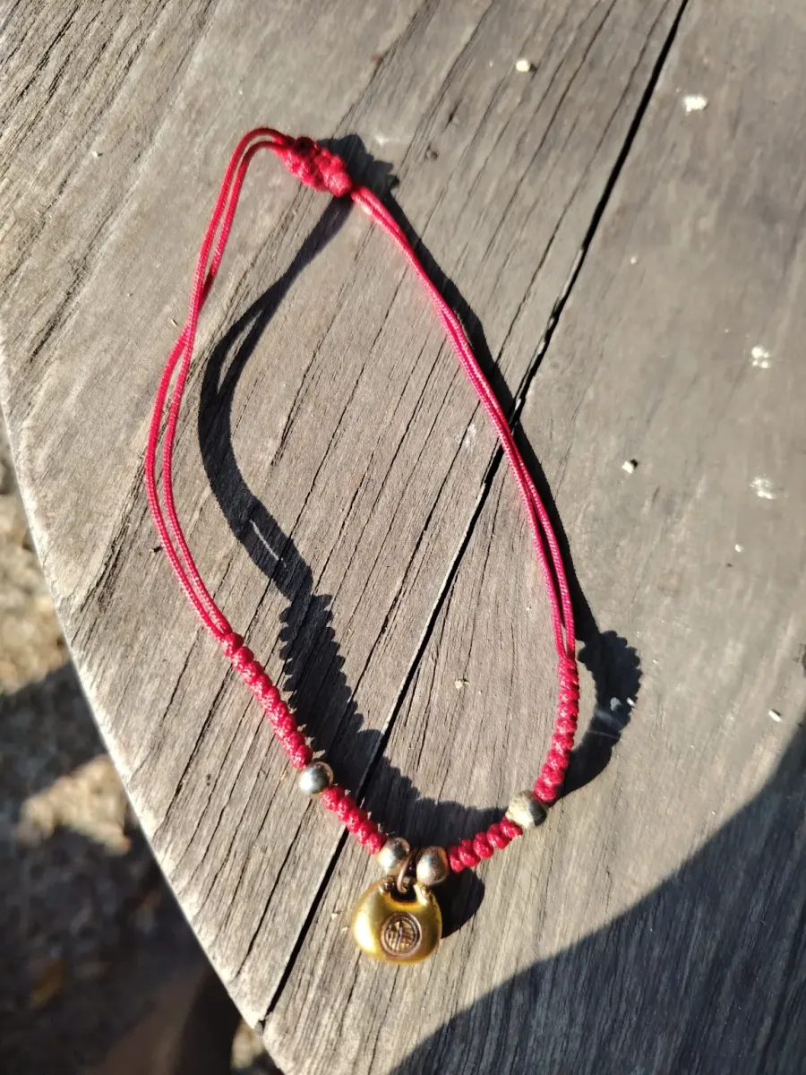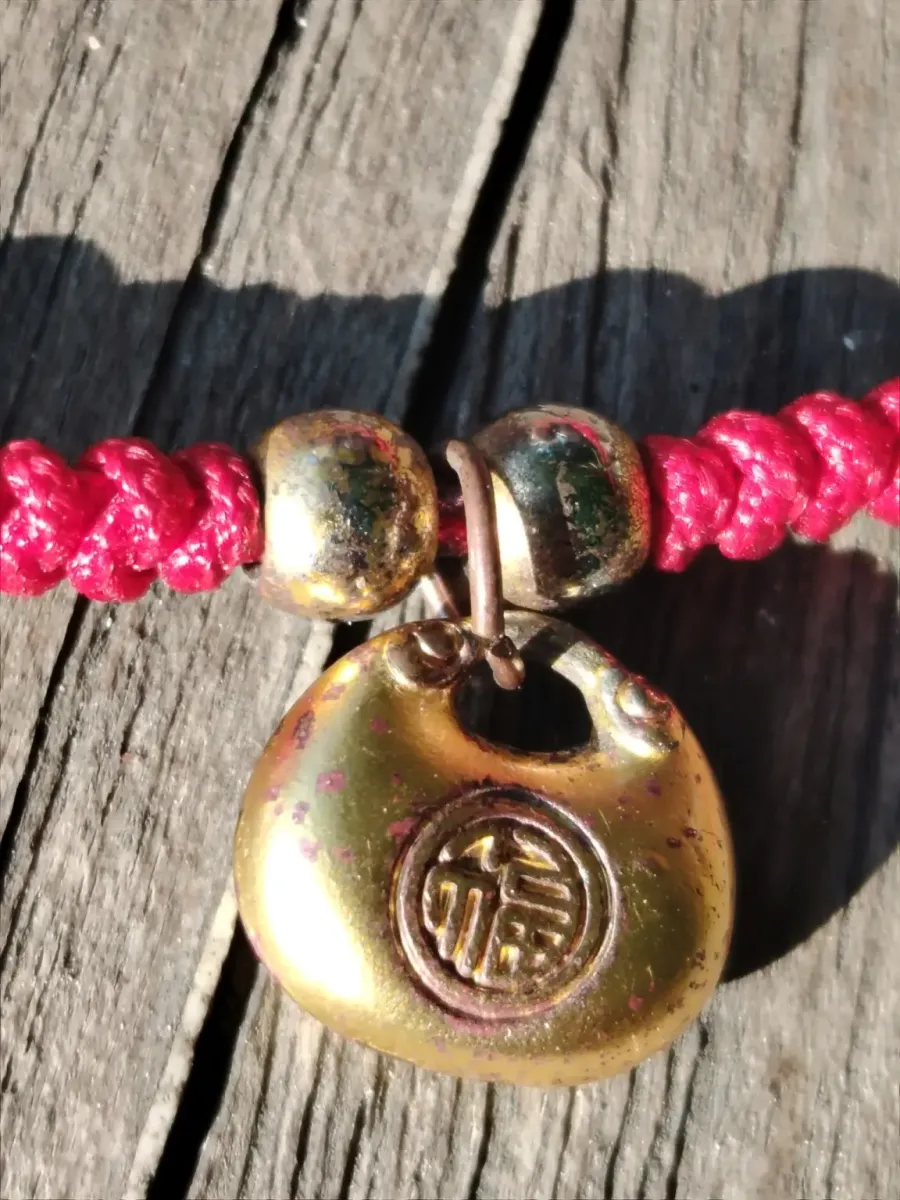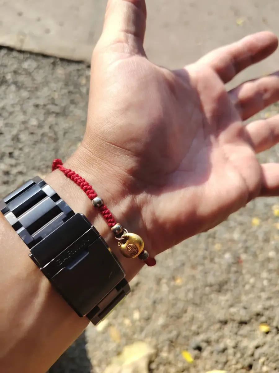 This is an Asian protection/luck bracelet with a strong Chinese-Thai influence. The red cord + metal pendant is not a random combination.