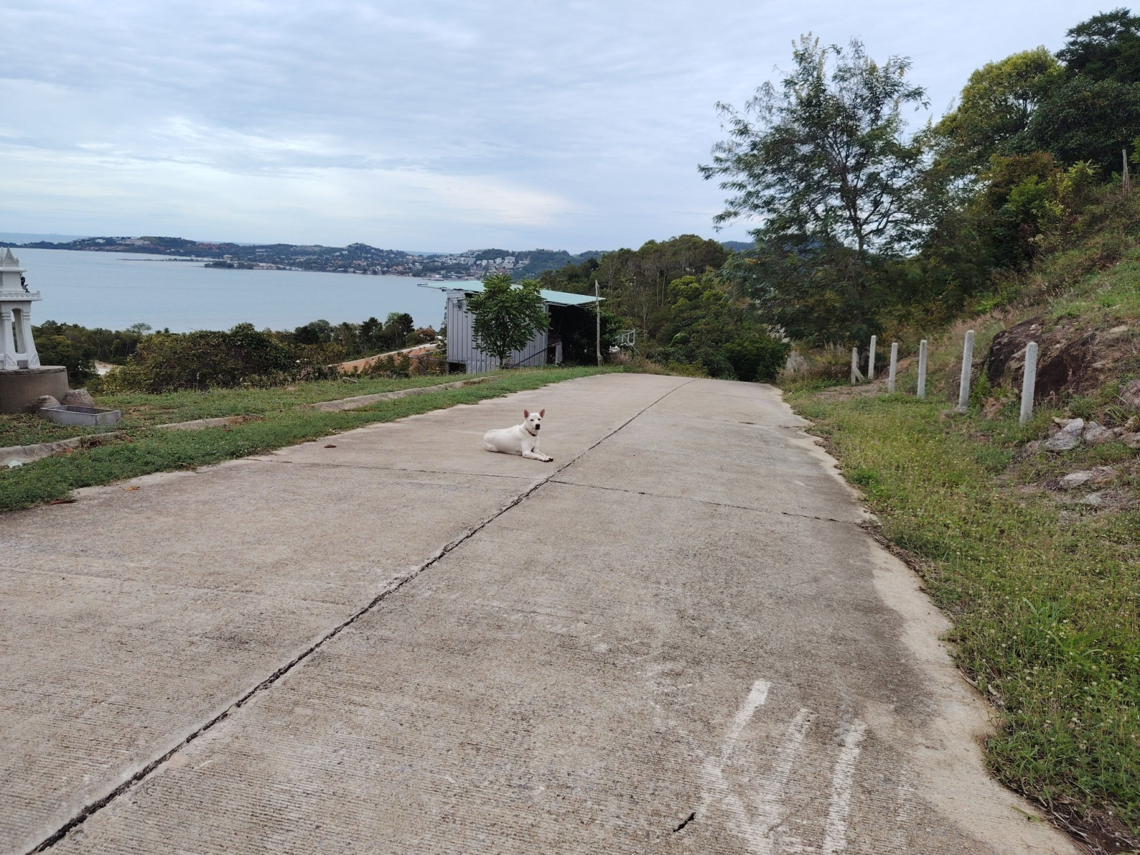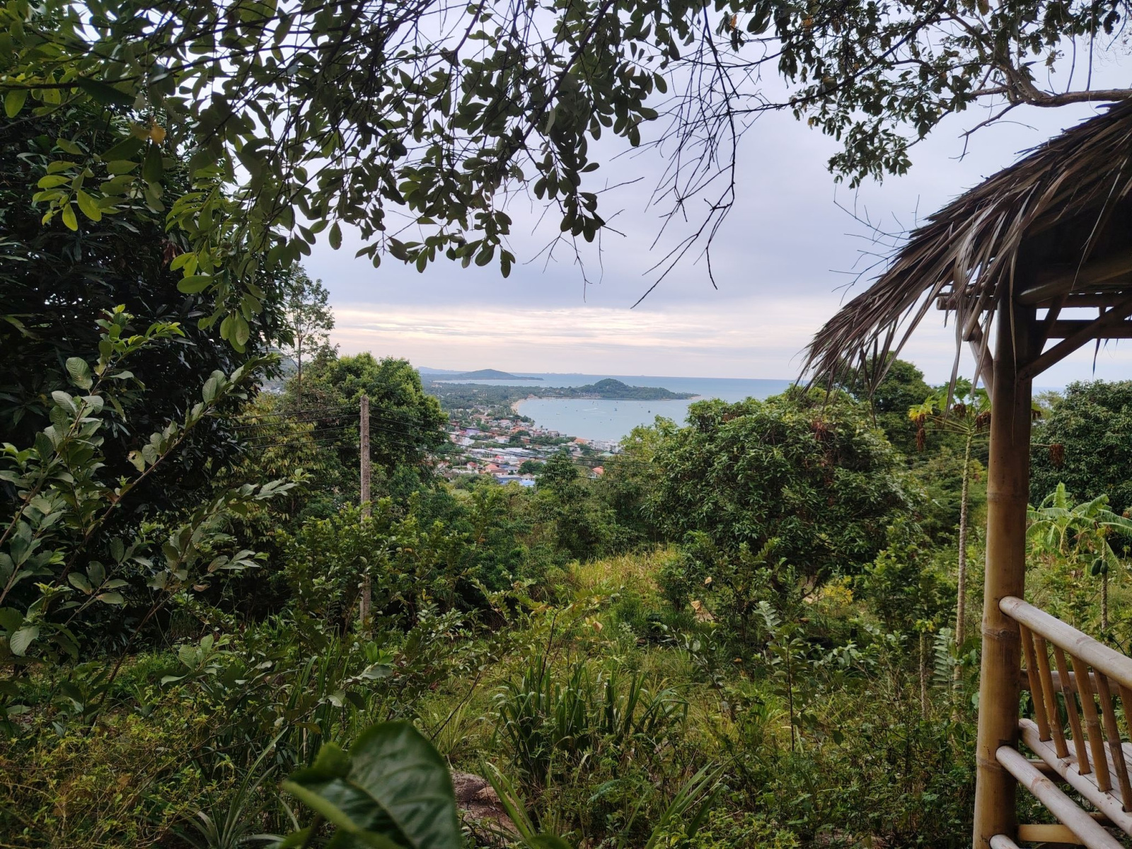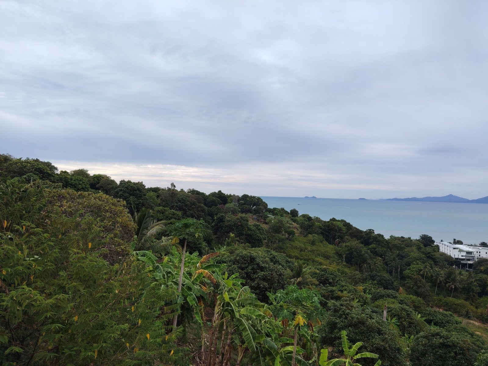 Aztán egy kicsit odébb mentem, hogy magát a Bangrak viewpointot is meg tudjam nézni. Hát, itt nem sok látnivaló van. A Google Maps jelezte, hogy ott vagyok, ahol a pont van. Éppen csak semmit nem lehetett látni. Annyira benőtte a növényzet a pontot, hogy teljesen inkognitóba vonult mögötte a sziget. Érdekes módon egy ház is állt ott, ahol a kilátásnak lennie kellett volna.