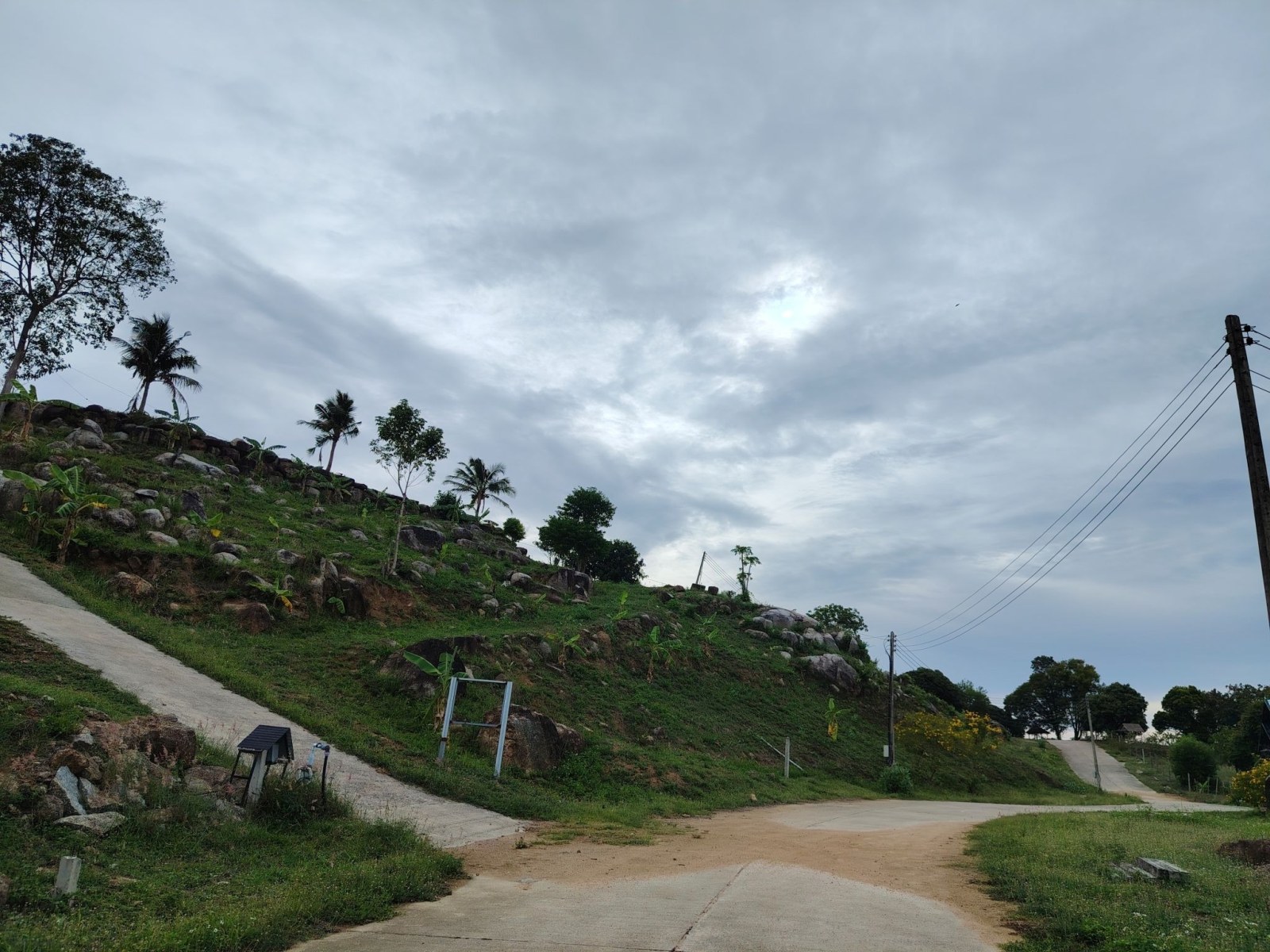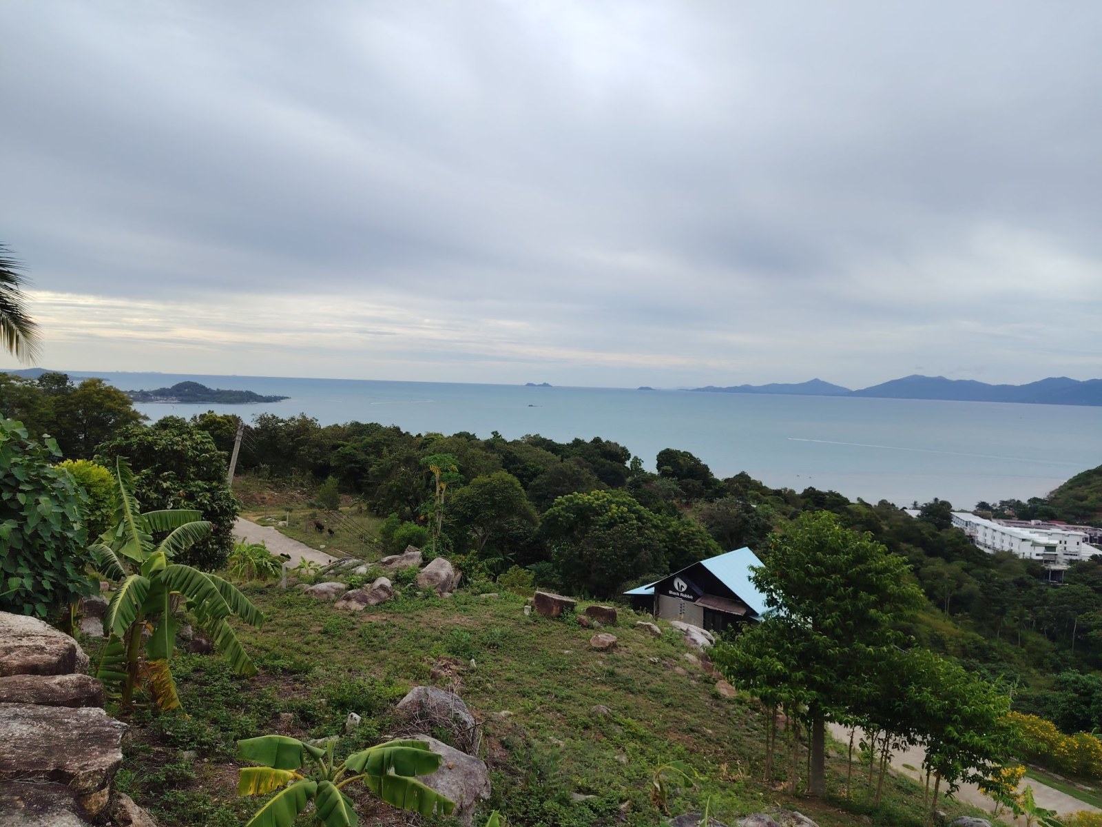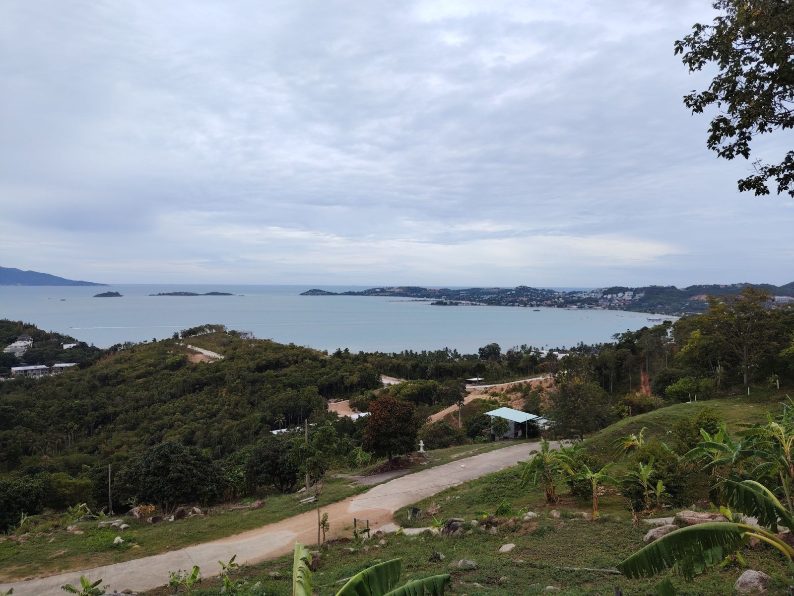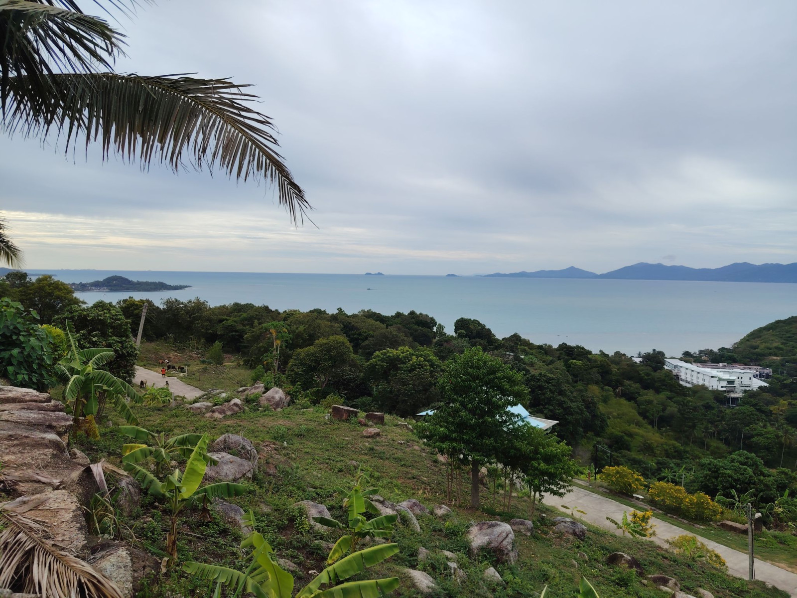 Aztán egy kicsit odébb mentem, hogy magát a Bangrak viewpointot is meg tudjam nézni. Hát, itt nem sok látnivaló van. A Google Maps jelezte, hogy ott vagyok, ahol a pont van. Éppen csak semmit nem lehetett látni. Annyira benőtte a növényzet a pontot, hogy teljesen inkognitóba vonult mögötte a sziget. Érdekes módon egy ház is állt ott, ahol a kilátásnak lennie kellett volna.