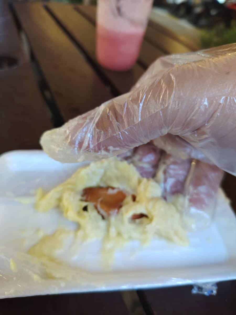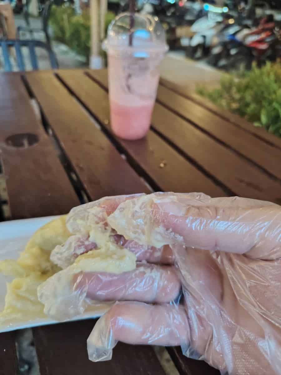 Ott volt tehát a számban az első falat, aminek ammóniás, kénes szaga volt, takonyszerű állapota és sült hagyma jellemzőkkel operált, mondhatom, hogy nem pont azt, tartottam a nyelvemen, amire egyesek azt mondják, hogy a gyümölcsök királya.