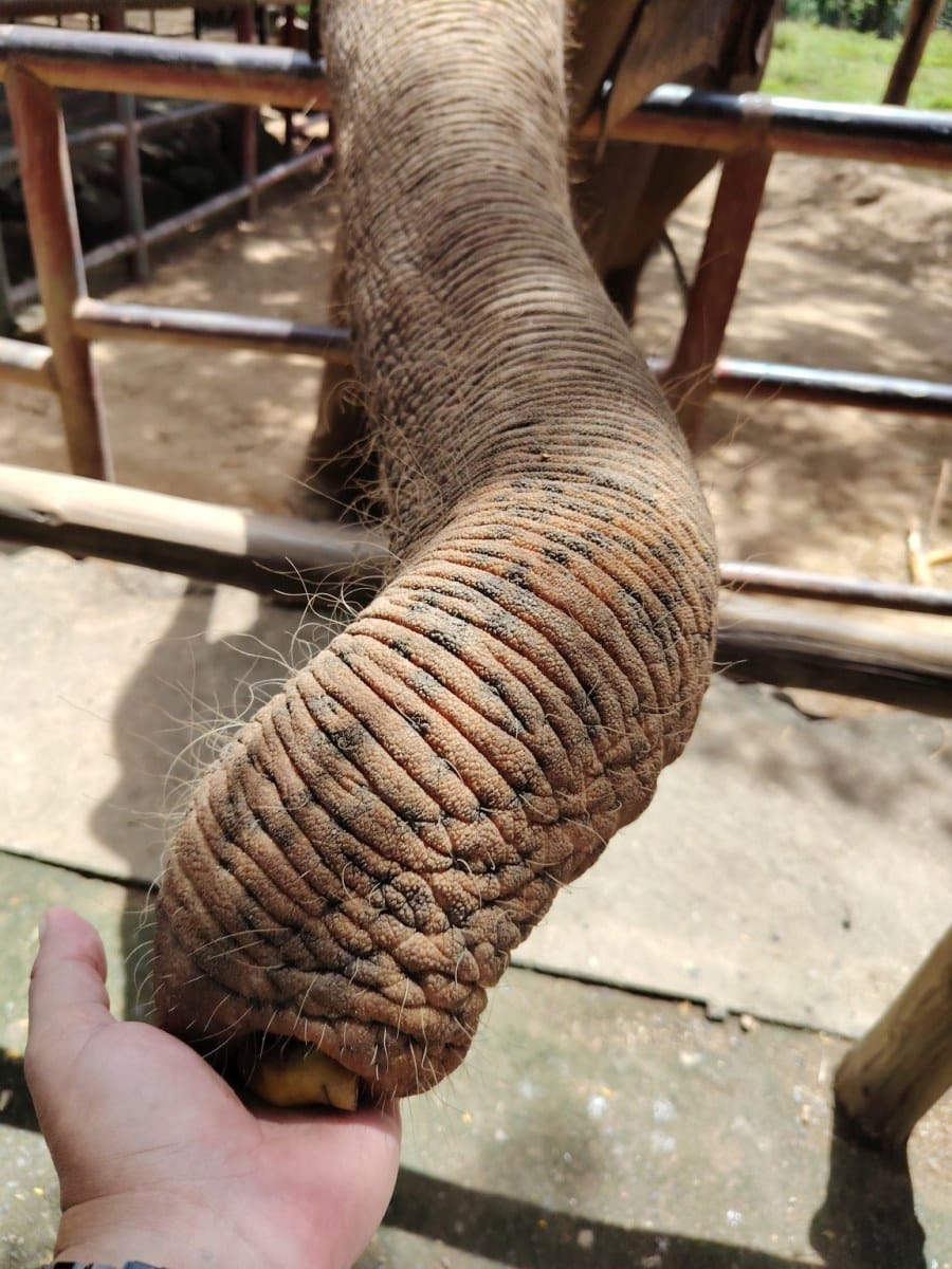 A két oldal egymásnak feszülhet, de azon a helyen, ahol voltam, figyeltem arra, amit nekünk mondtak. Egy elefánt a testsúlyának a 10%-val egyező tömegű növényt eszik meg naponta. Egy ázsiai elefánt tömege 2-3 tonna körül van, így 200-300 kg növényre van szüksége. Ennek az ismeretnek a tudatában már egyszerű a választás: az elefántot vissza kell engedni a természetbe, ami egy ilyen szigeten biztosan nem lenne egyszerű megoldás. A másik megoldás lehet a menedékhely, ami azonban azt eredményezi, hogy 5 elefánt tartása esetén 1000-1500 kg élelmiszer szükséges naponta.