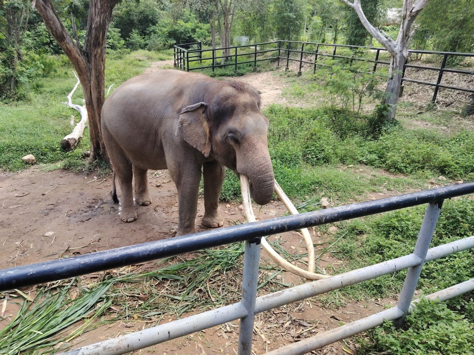 Az etetés után átmentünk egy másik helyre a menhelyen belül, ahol egy öreg elefánt bikát néztünk meg. Érdemes a galériában megnézni az agyarait!