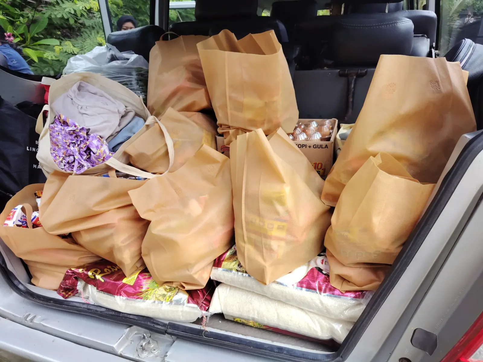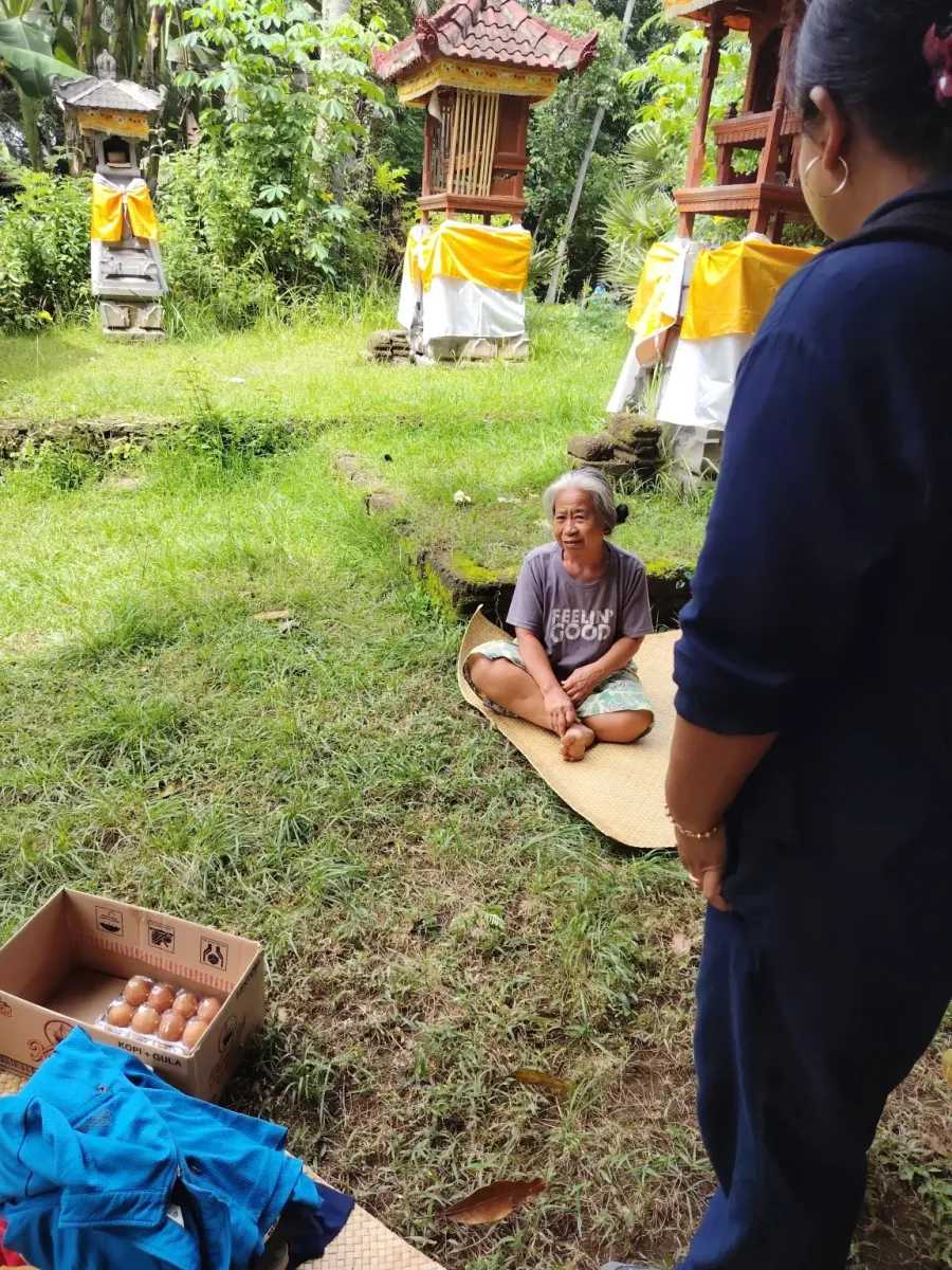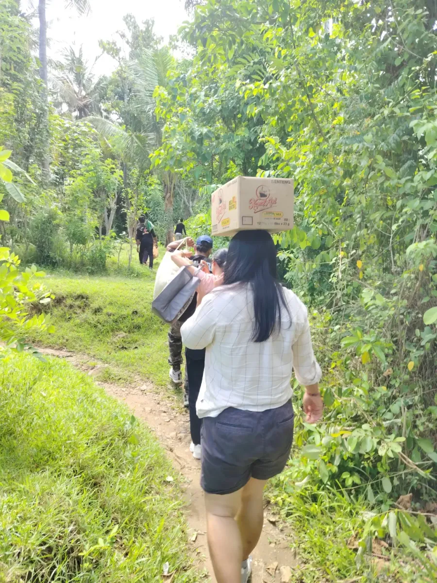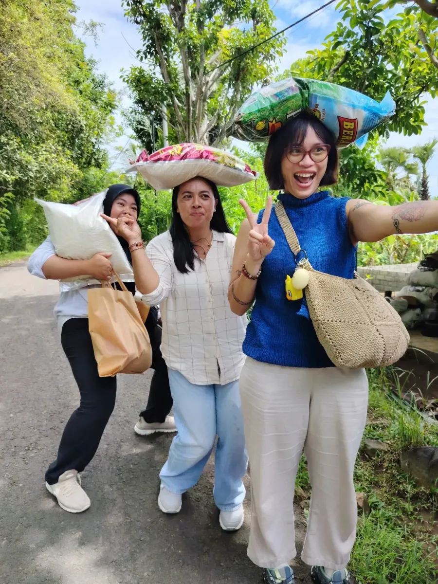 Egy órával később Selat környékén jártunk, az Agung-hegy déli-délkeleti lejtőin. A kisbuszt megtöltöttük rizzsel, tojással, élelmiszerrel, ruhákkal. Ezeket vittük a rászorulóknak.