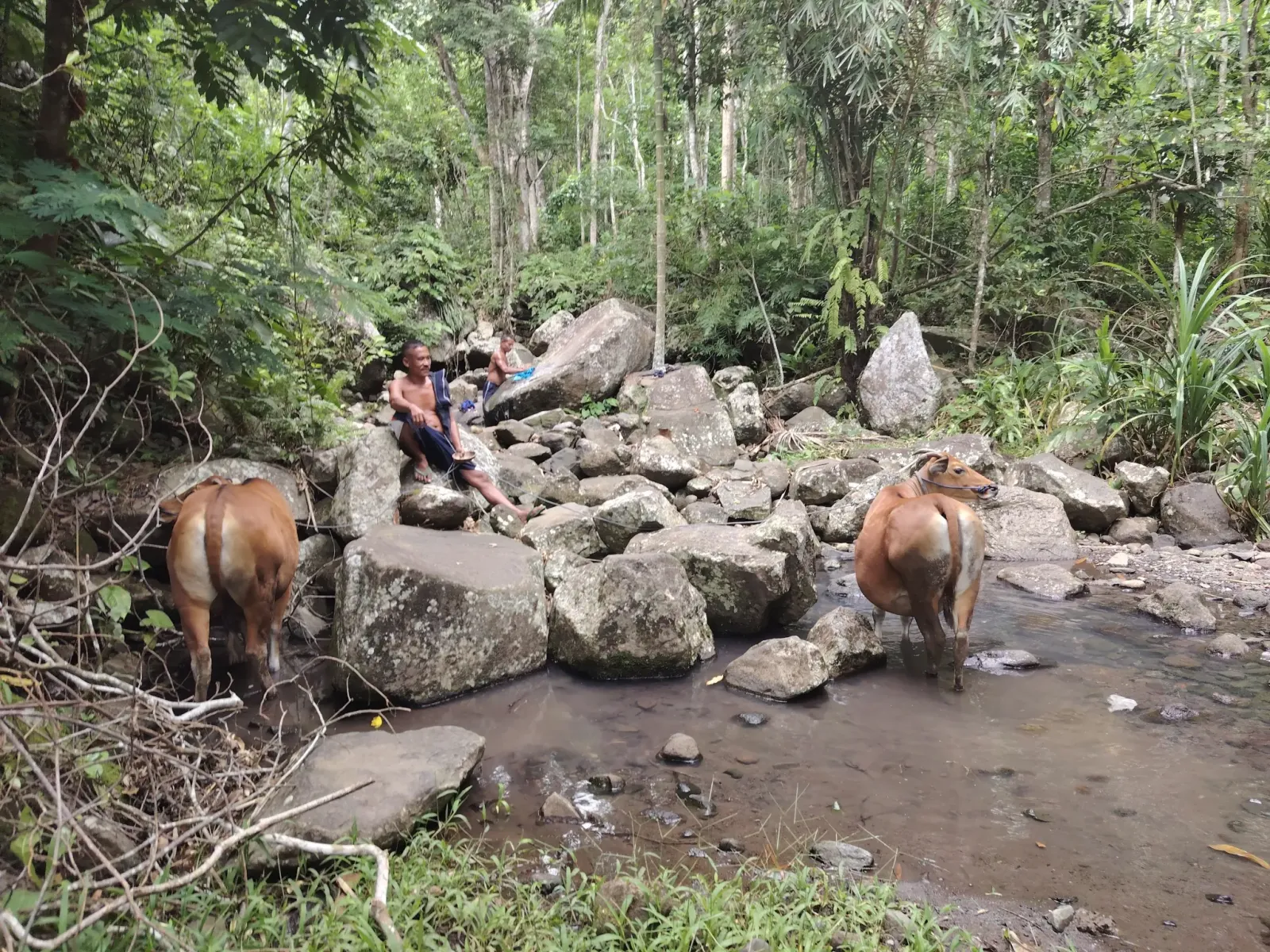A túra alatt több helyen megálltunk a kisbusszal és gyalogosan vittünk el élelmiszert az erdő mélyére. Három helybéli srác is csatlakozott hozzánk, ők vezettek el minket a családokhoz az erdőn keresztül. A megállók között én motorral közlekedtem, mert ez egyikük elvitt magával.