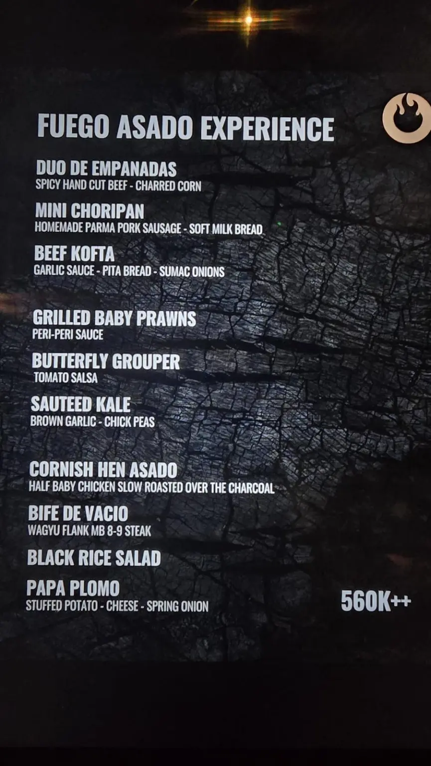 Egy Fuego nevű étteremben került sor a vacsorára, az alábbi beharangozó alapján.