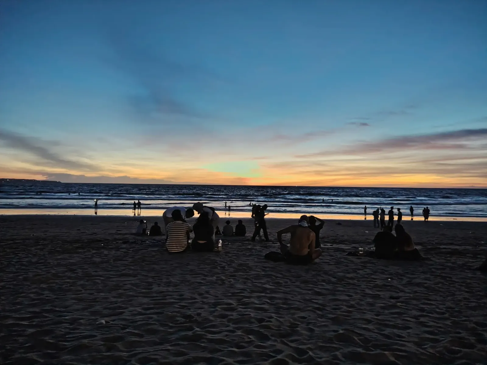 A séta végén egyszer csak a tengerparton találtam magam, ahol rengeteg ember a naplementét nézte. Leültem egy ágyra, és egyszerűen csak csodáltam a természet egyik legszebb moziját.