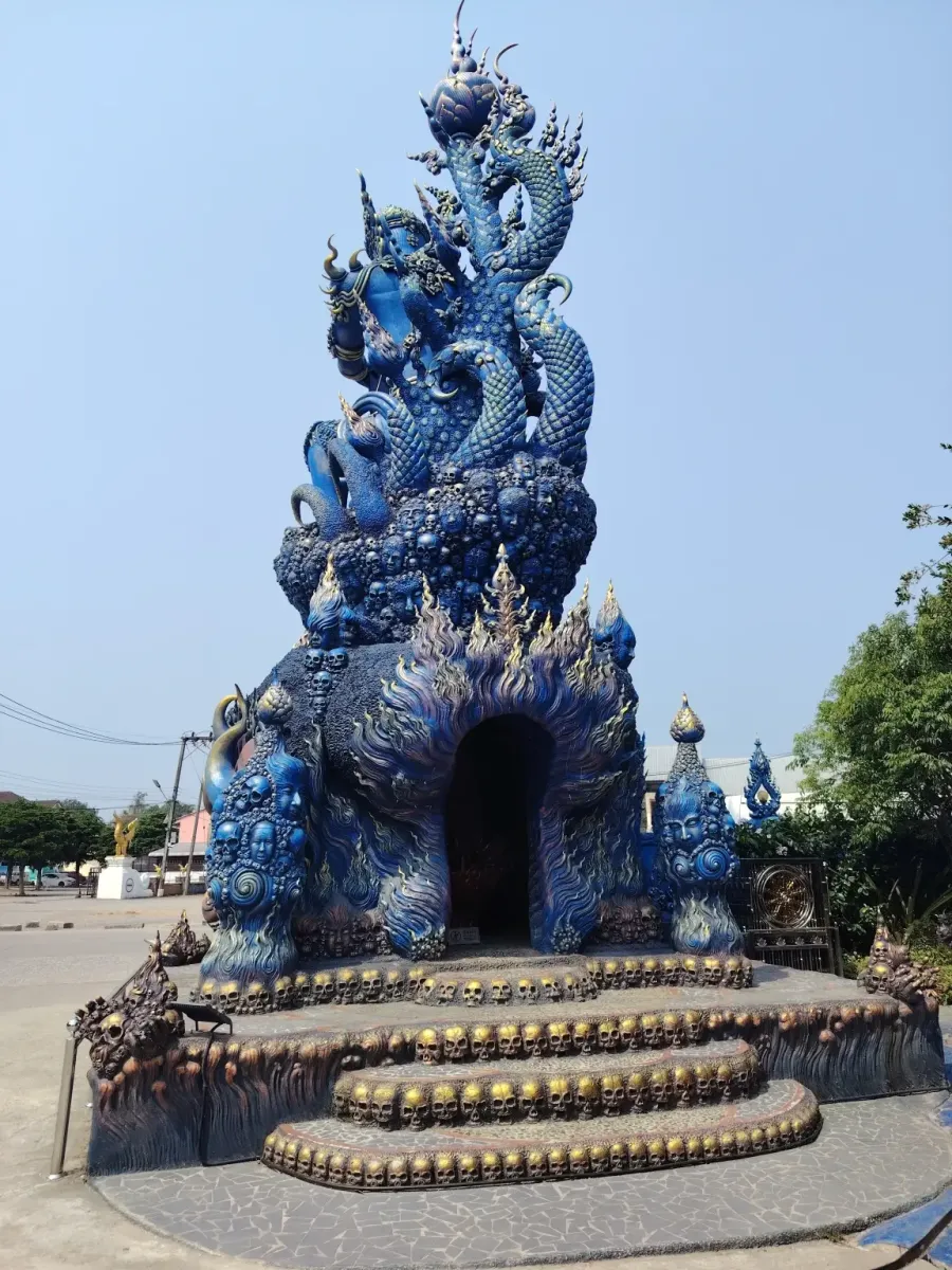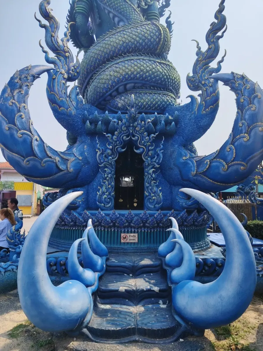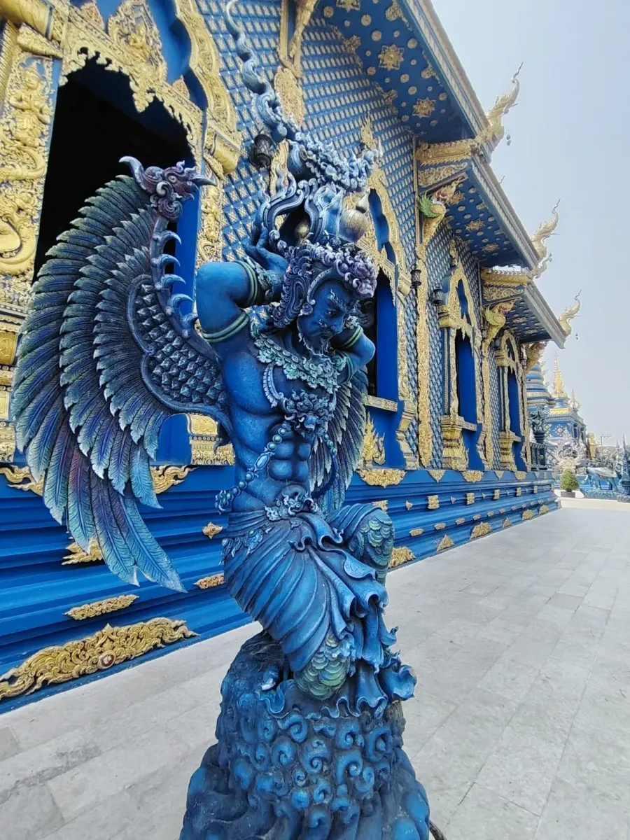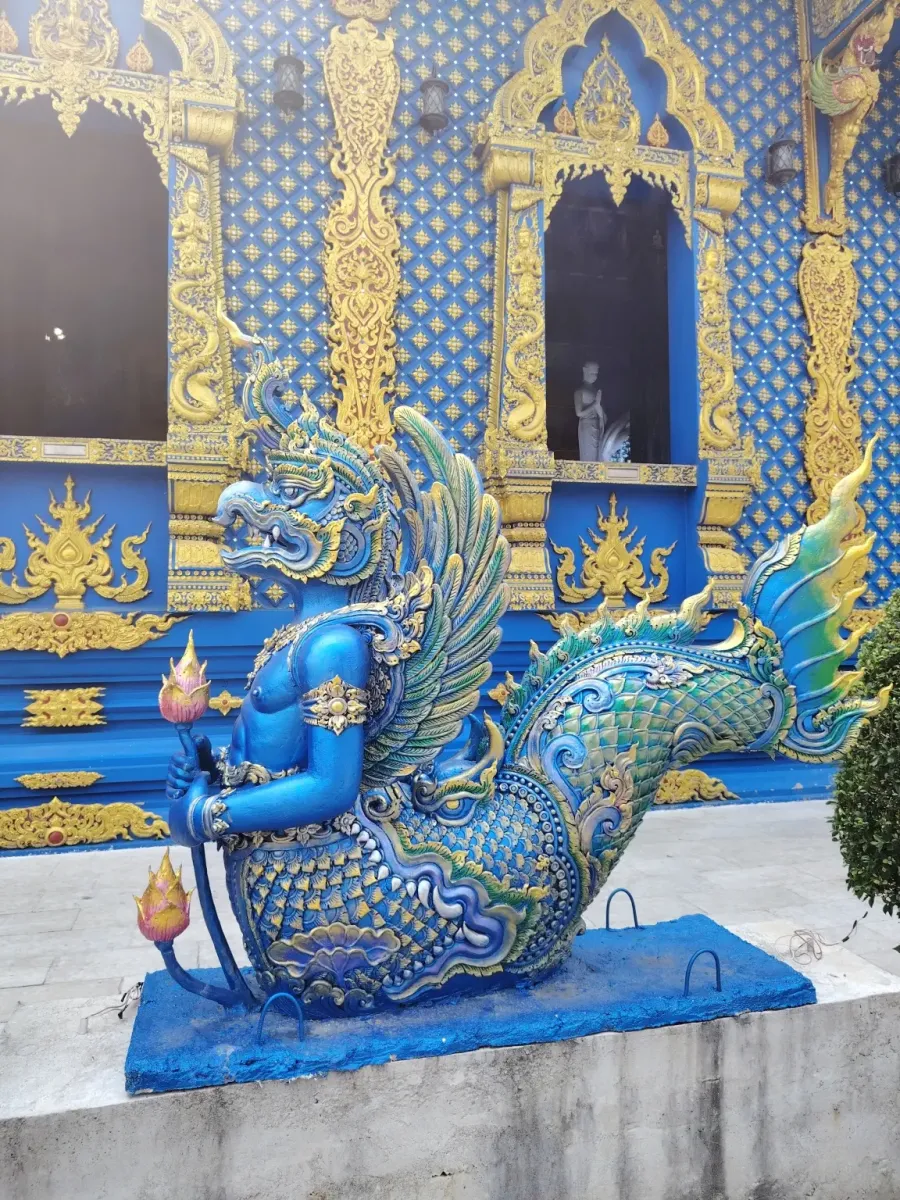 Itt Észak-Thaiföldön nem ez az első templom, amelynek a belső falai gyönyörű festményekkel vannak kidekorálva Buddha életének jeleneteivel. Kívül rendkívül gyönyörű kék szobrok őrzik a templom békéjét, így ez a kirándulás egyben egy művészeti bemutatóvá is vált.