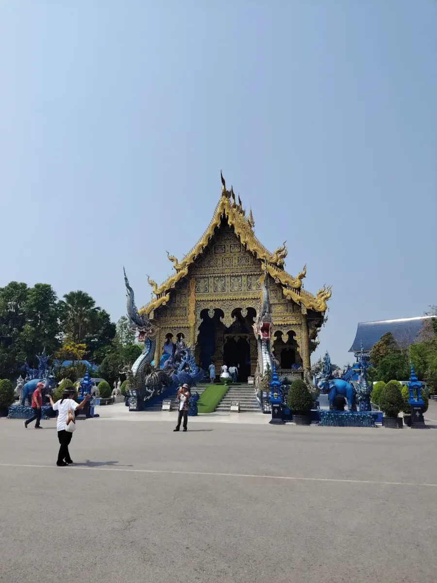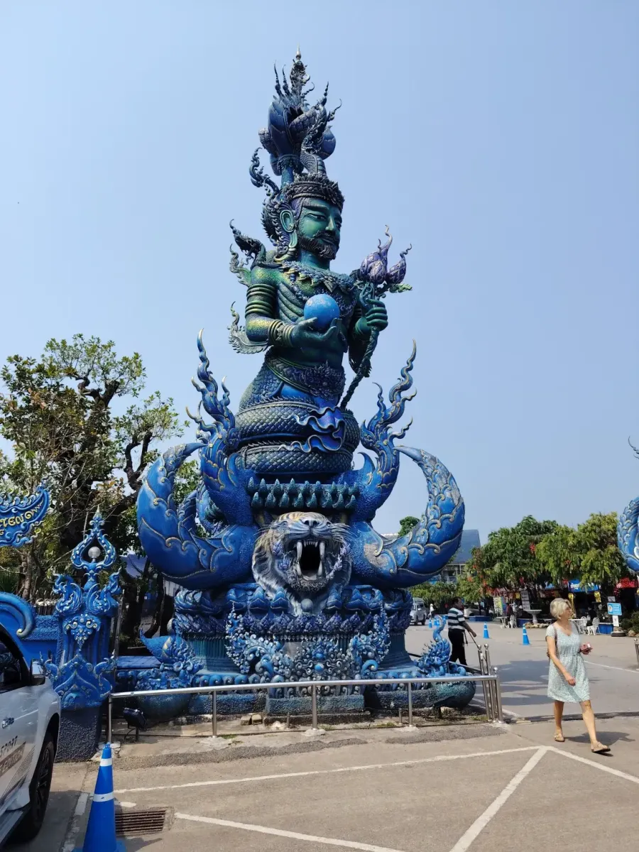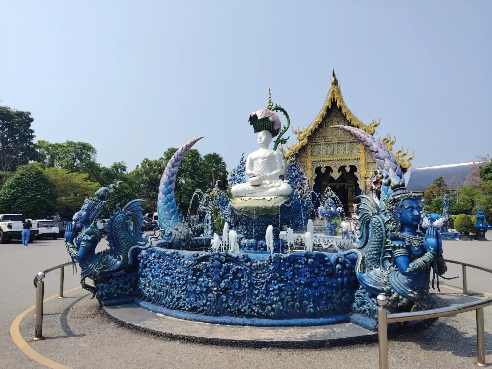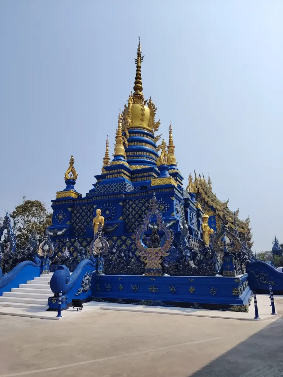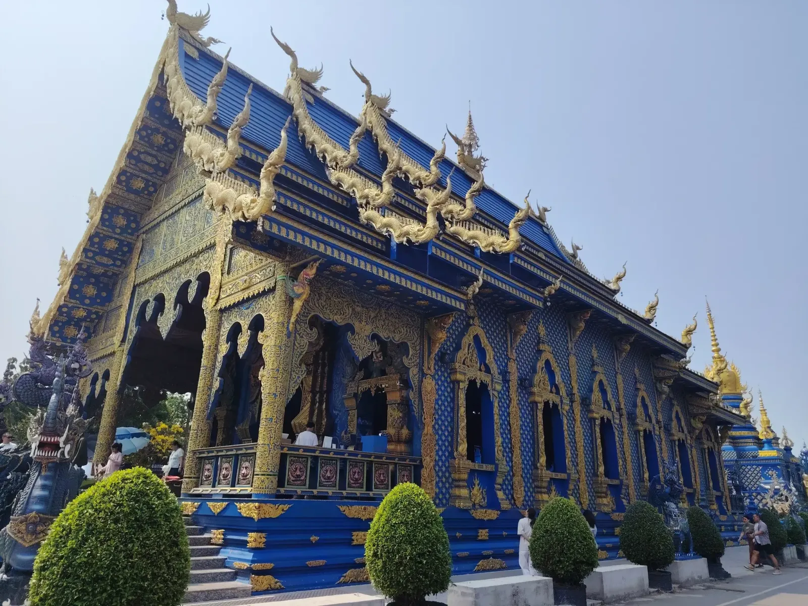 Itt Észak-Thaiföldön nem ez az első templom, amelynek a belső falai gyönyörű festményekkel vannak kidekorálva Buddha életének jeleneteivel. Kívül rendkívül gyönyörű kék szobrok őrzik a templom békéjét, így ez a kirándulás egyben egy művészeti bemutatóvá is vált.