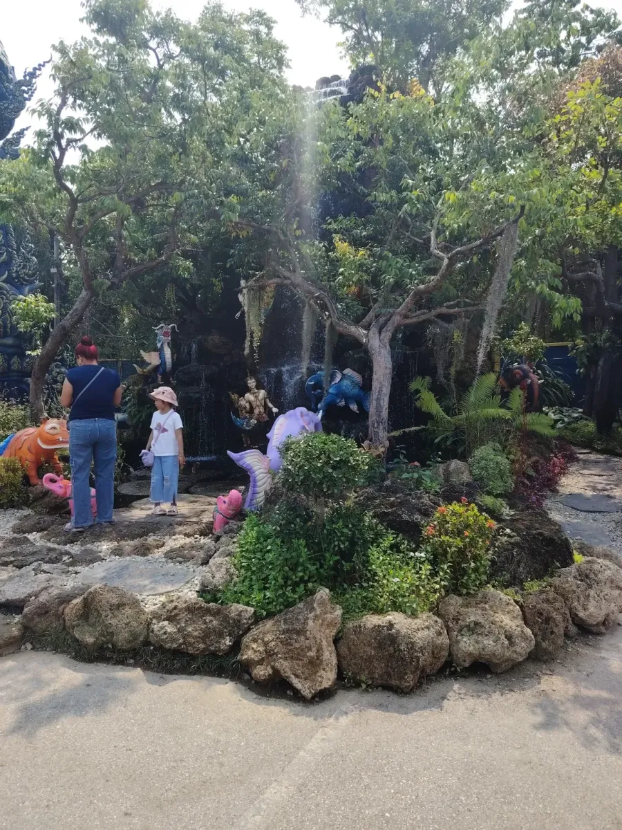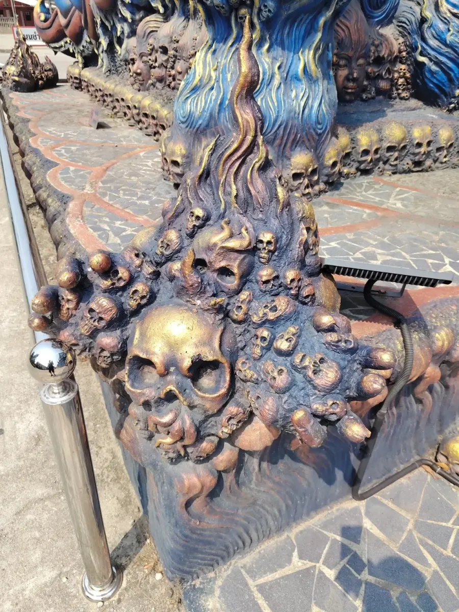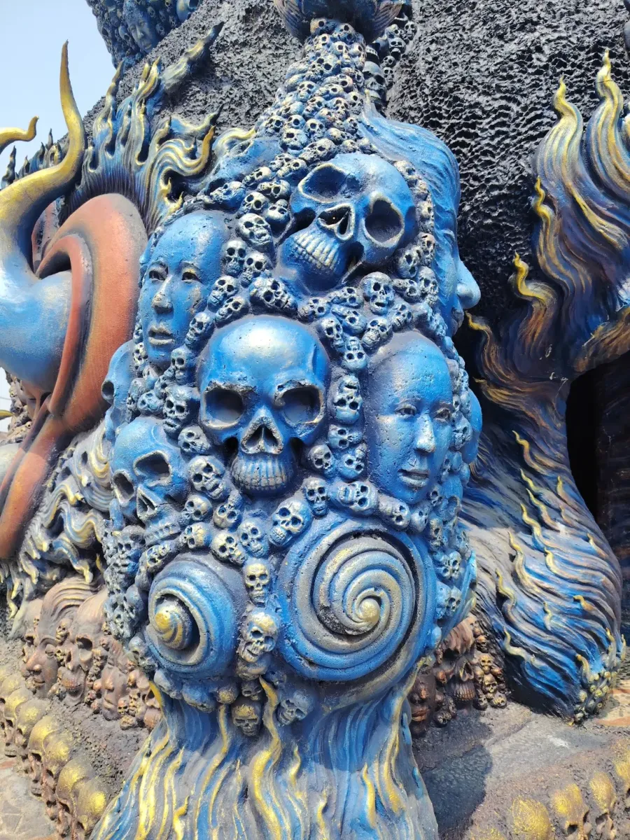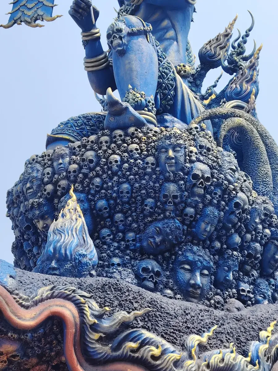 Itt Észak-Thaiföldön nem ez az első templom, amelynek a belső falai gyönyörű festményekkel vannak kidekorálva Buddha életének jeleneteivel. Kívül rendkívül gyönyörű kék szobrok őrzik a templom békéjét, így ez a kirándulás egyben egy művészeti bemutatóvá is vált.