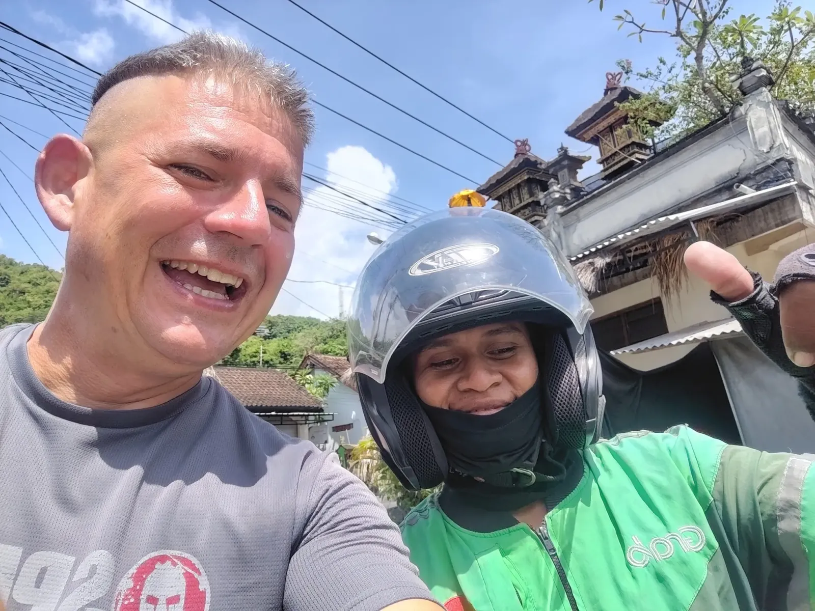 Ekkor elgondolkodtam azon, hogy ez az ember másfél órát cipel engem, majd visszajön, valószínűleg fuvar nélkül, tehát 3 órát dolgozik a nagyon kevés pénzért. Úgyhogy meggondoltam magam, és mondtam neki, hogy a végén 100.000 IDR-t (2.000 HUF, 6 UDS) fogok neki adni.