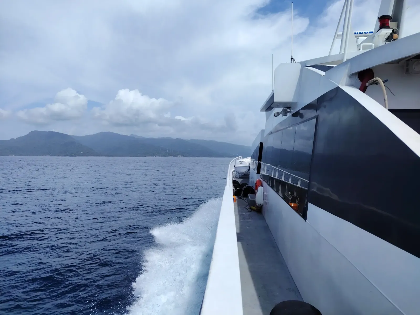 A hegyek már messziről mutatják az irányt a tengeren. Minden zöld. Ahogy közeledünk a part felé, a látóhatár elkezd nyüzsögni az élettől.