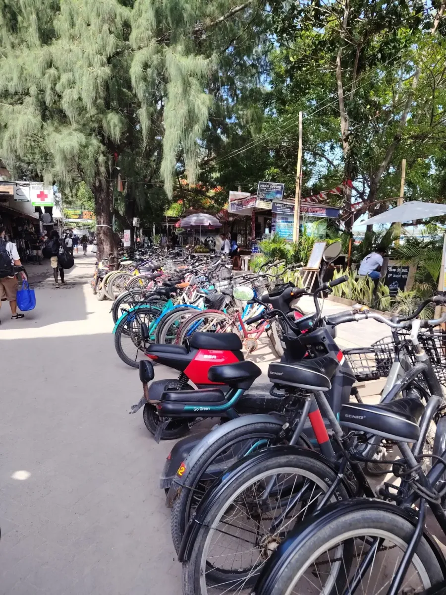 Maga a biciklizés elég nehézkes. Ezen a szigeten nincsenek autók és hagyományos motorok. Elektromos kis motorok vannak, meg lovaskocsik. És kerékpárok. Ebből viszont annyi van, mint égen a csillag.