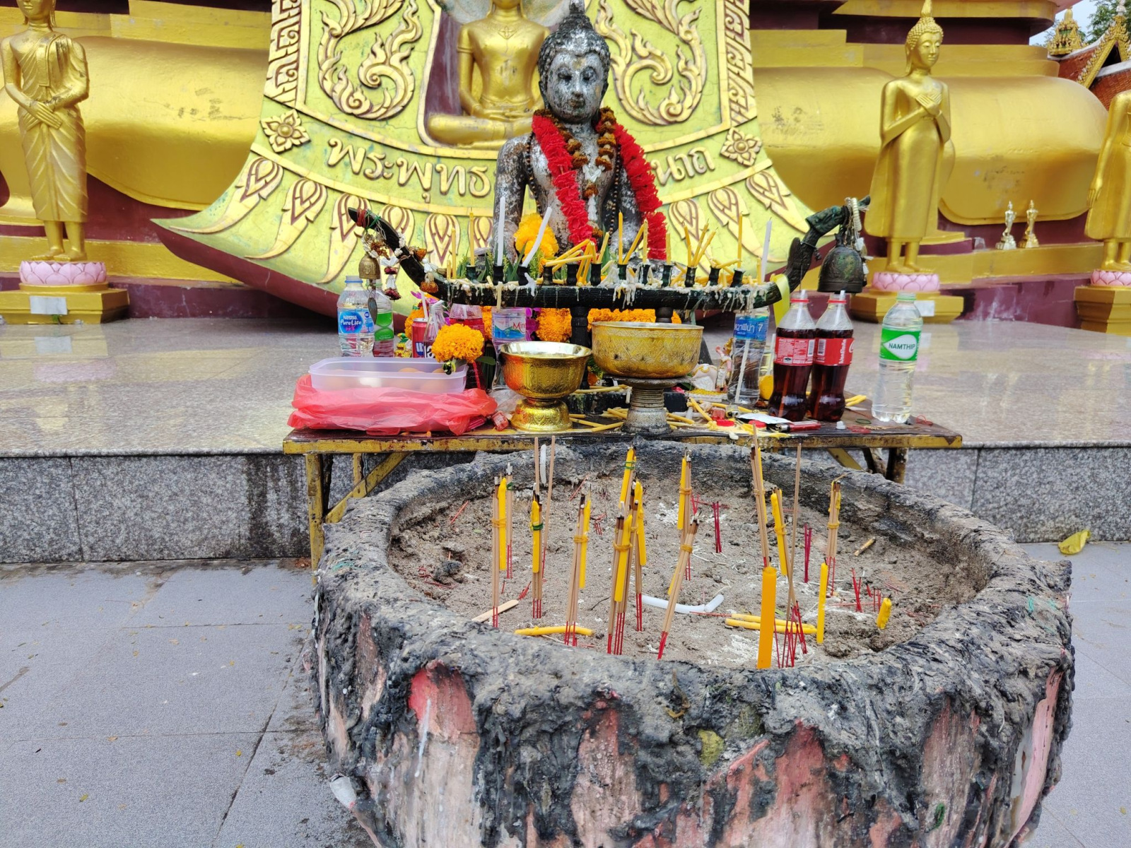 A fő szobor mellett található még egy fehér Budai-szobor, valamint kisebb szentélyek, amelyek Ganésának, Visnunak, Sivának és Szakkának vannak szentelve.Bár szabadtéri szoborról van szó, egy bonyolult ubosotban (a Vat-ok legszentebb területén) található egy emelvény-pavilonon, amelyet egy templomtó vesz körül.
