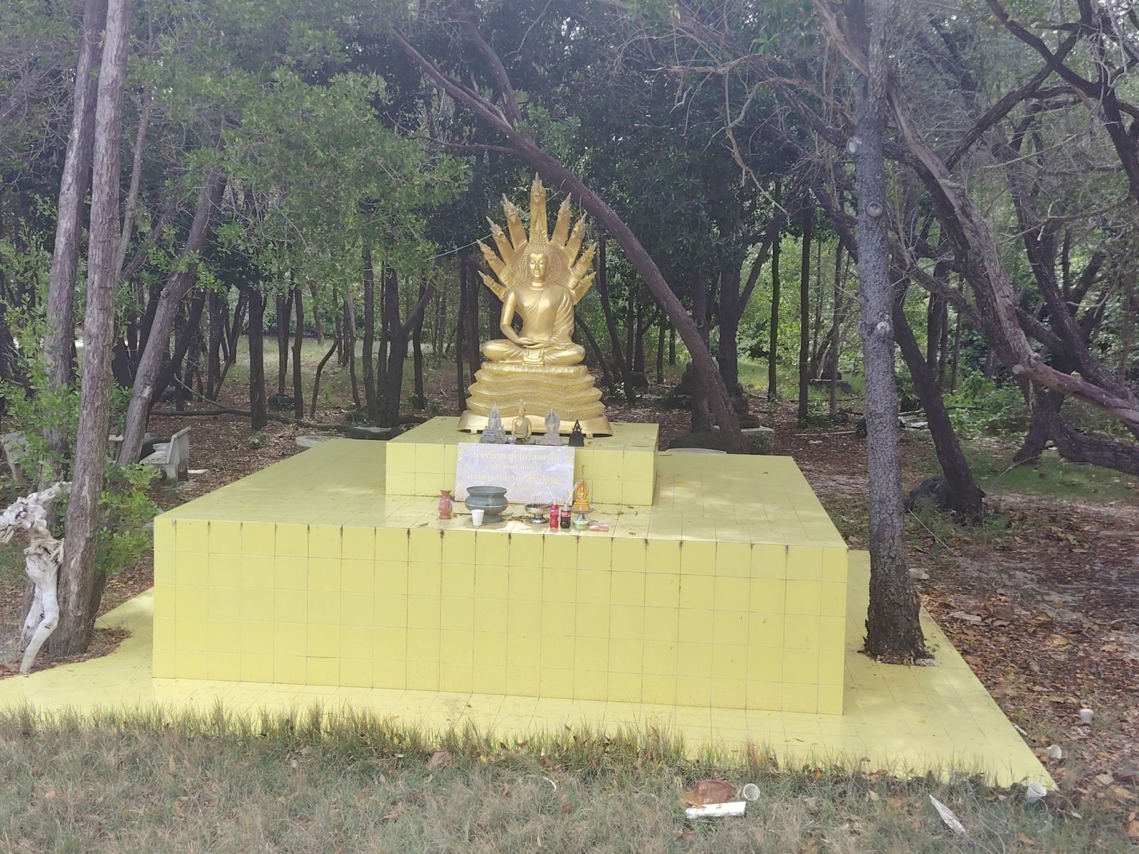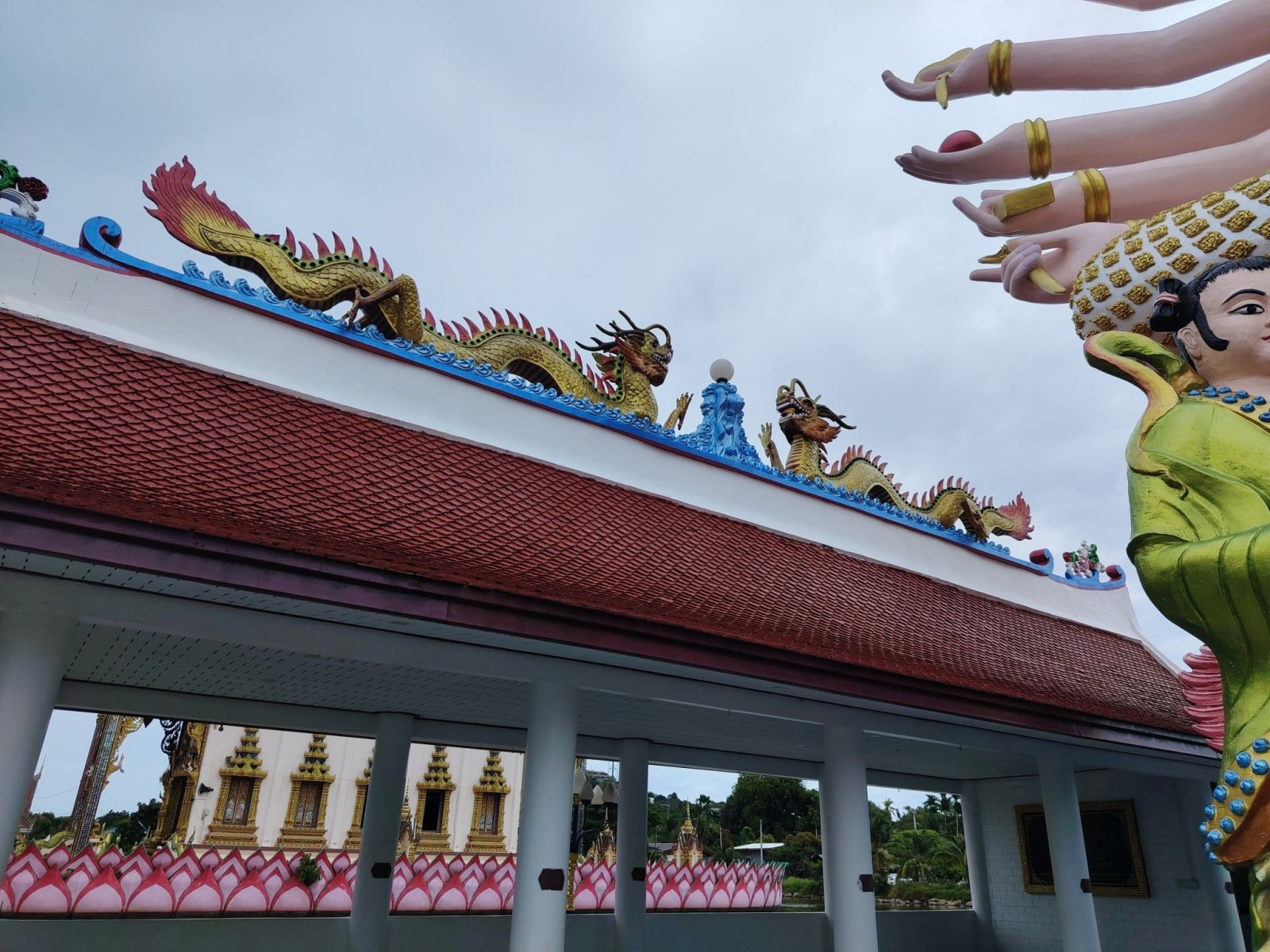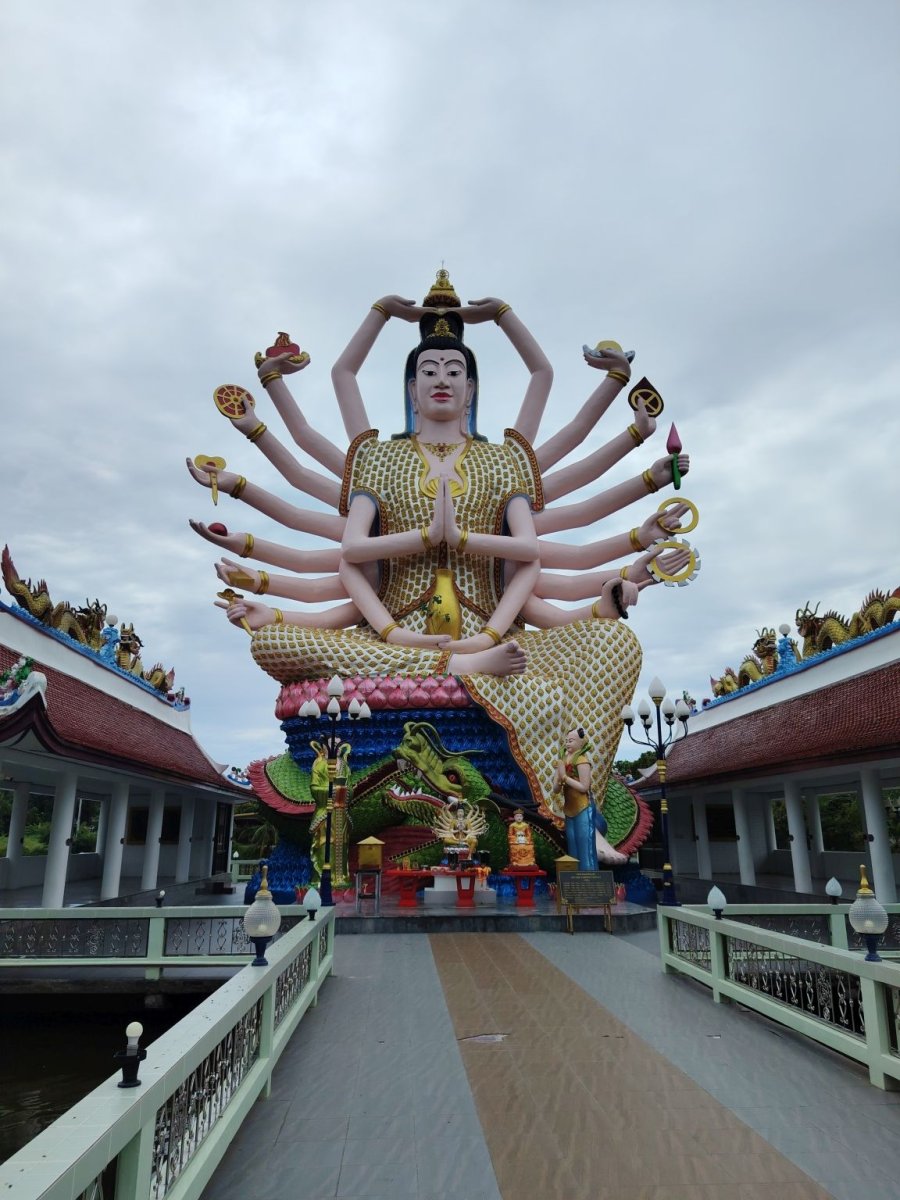 Ebből a leírásból tudtam meg azt, amit eddig nem vettem észre, nevezetesen azt, hogy ez a szobor egy kis szigeten van. Tulajdonképpen a Koh Fan szigetet Koh Samui szigettel összekötő töltésen üldögéltem, mikor a “Villámok a sziget felett” bejegyzésben írottakat átéltem.