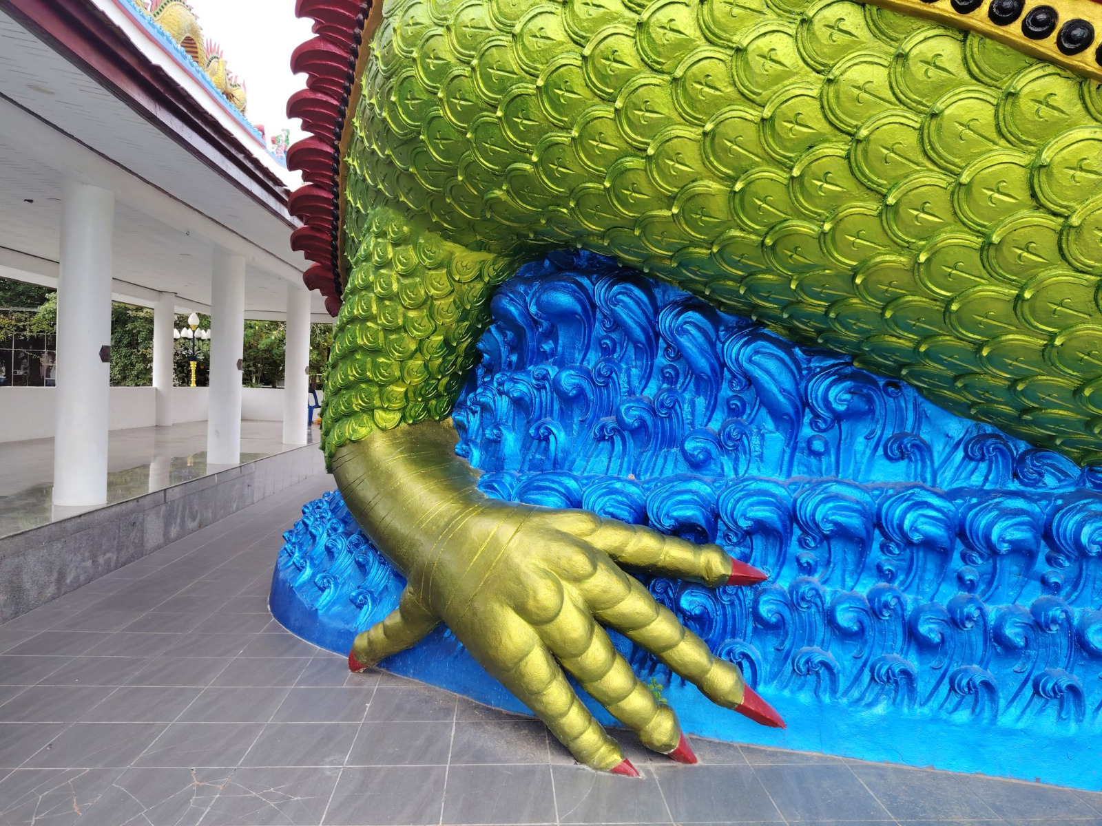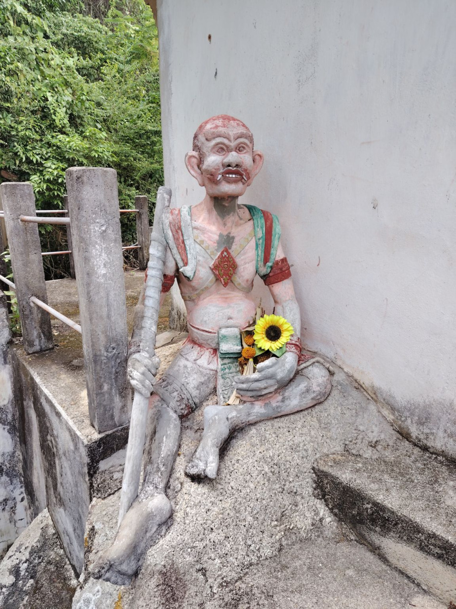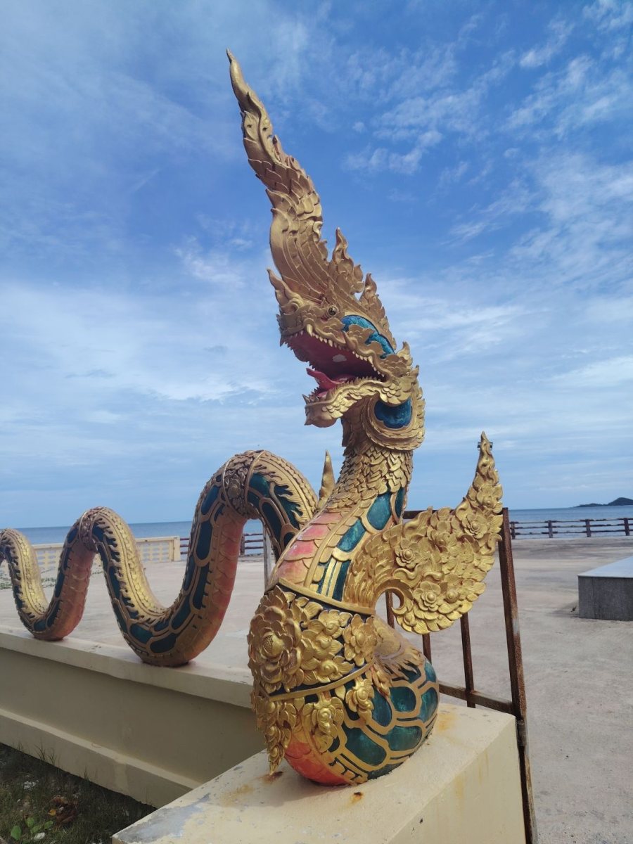 A templomot és a környékét elhagyva ettem egy finom brunchot. A vendéglős őszinte érdeklődéssel kérdezte meg, hogy hogyan ízlett az étel. Majd kicsit kérdezősködött. Honnan jöttem, hol élek a szigeten, láttam -e a szobrot, megnézem -e a másikat. És természetesen a wai bemutatásakor nagyon szép kirándulást kívánt nekem.Nem hagytam még itt a helyet, egy kicsit távolabb menve a fő területtől, a tengerparton jó pár érdekes szobrot lehet még megnézni. Ezek szépen látszódnak a töltésről, így már a múltkori alkalommal elhatároztam, hogy ezeket is megnézem.
