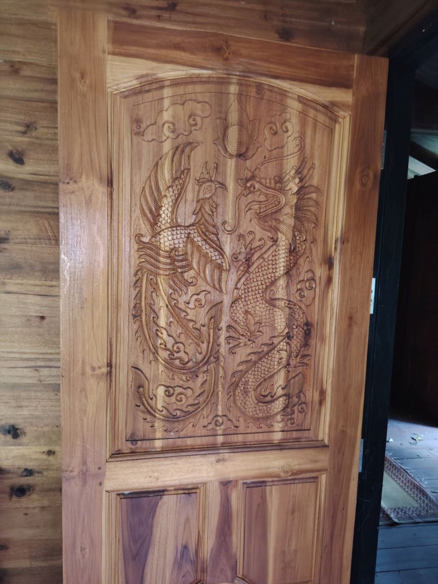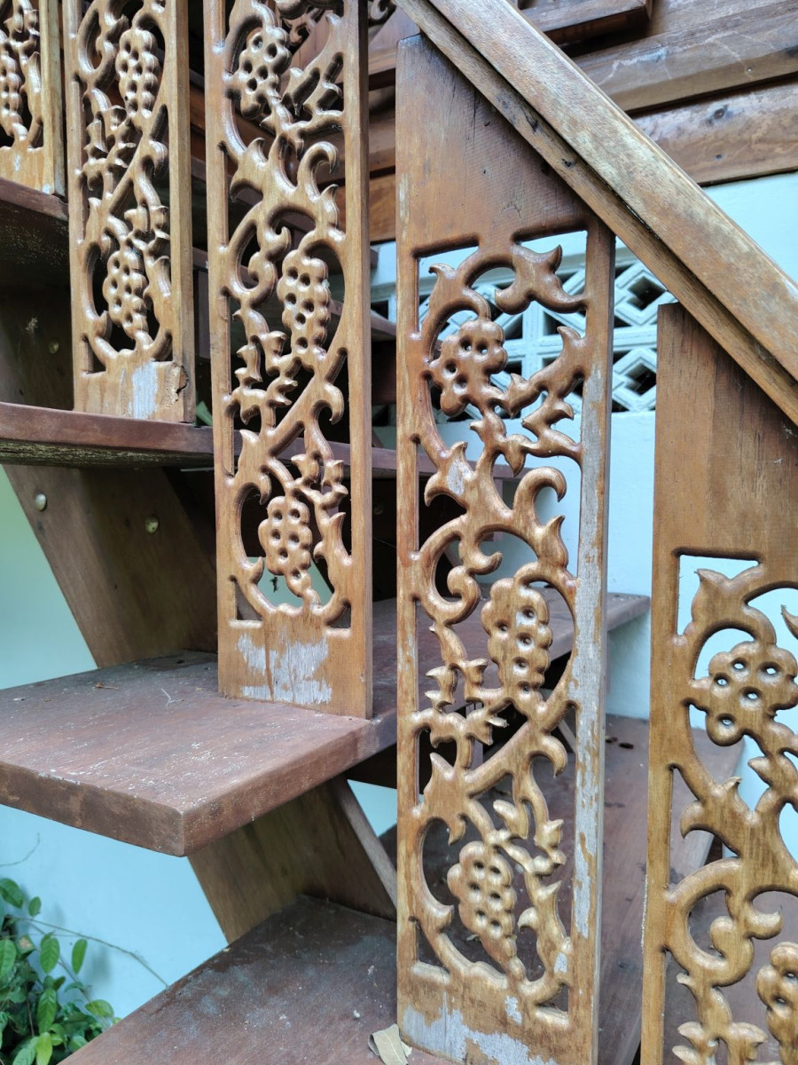Lefelé menet észrevettem egy szép modern, elhagyatottnak tűnő épületet, s mivel a felső szintje nyitva volt, megnéztem ezt is. Gyönyörű fafaragásokat láthattam az üres épületen.