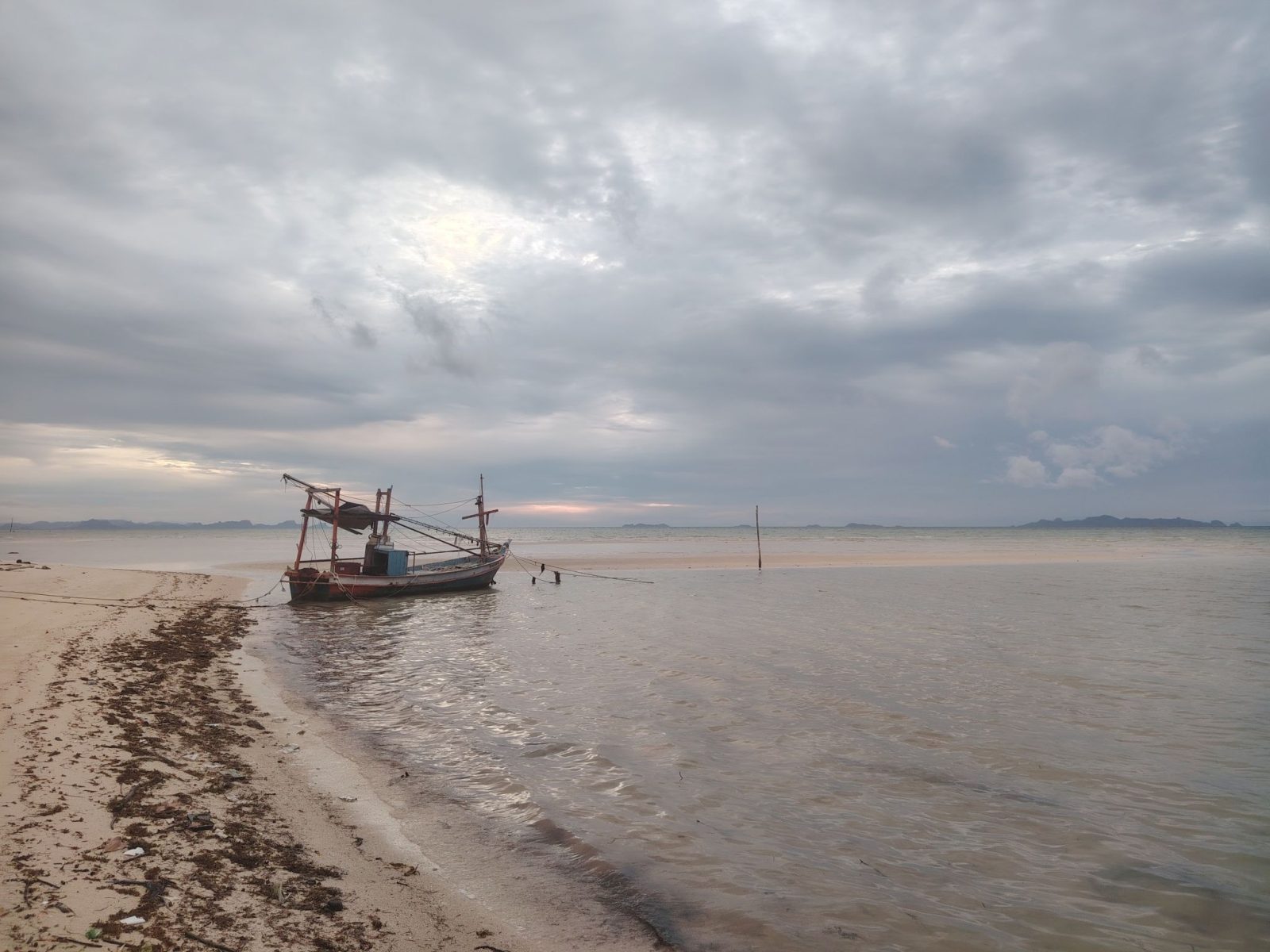 A következő megálló egy ötletszerű megálló volt. Nem is tudnám, hogy hol voltam, ha az előbb ki nem próbálom ezt a fénykép információs térképezést. Szóval, mendegéltem az úton a kis kék robogómmal és a főútról hirtelen nem álltam ellen egy utcácska hívogatásának. Szűk kanyargókon mentem le a tengerpartra, aminek neve sincs a térképen, de azt sikerült kiderítenem, hogy az pont Ko Mat Lang szigetével voltam szemben.