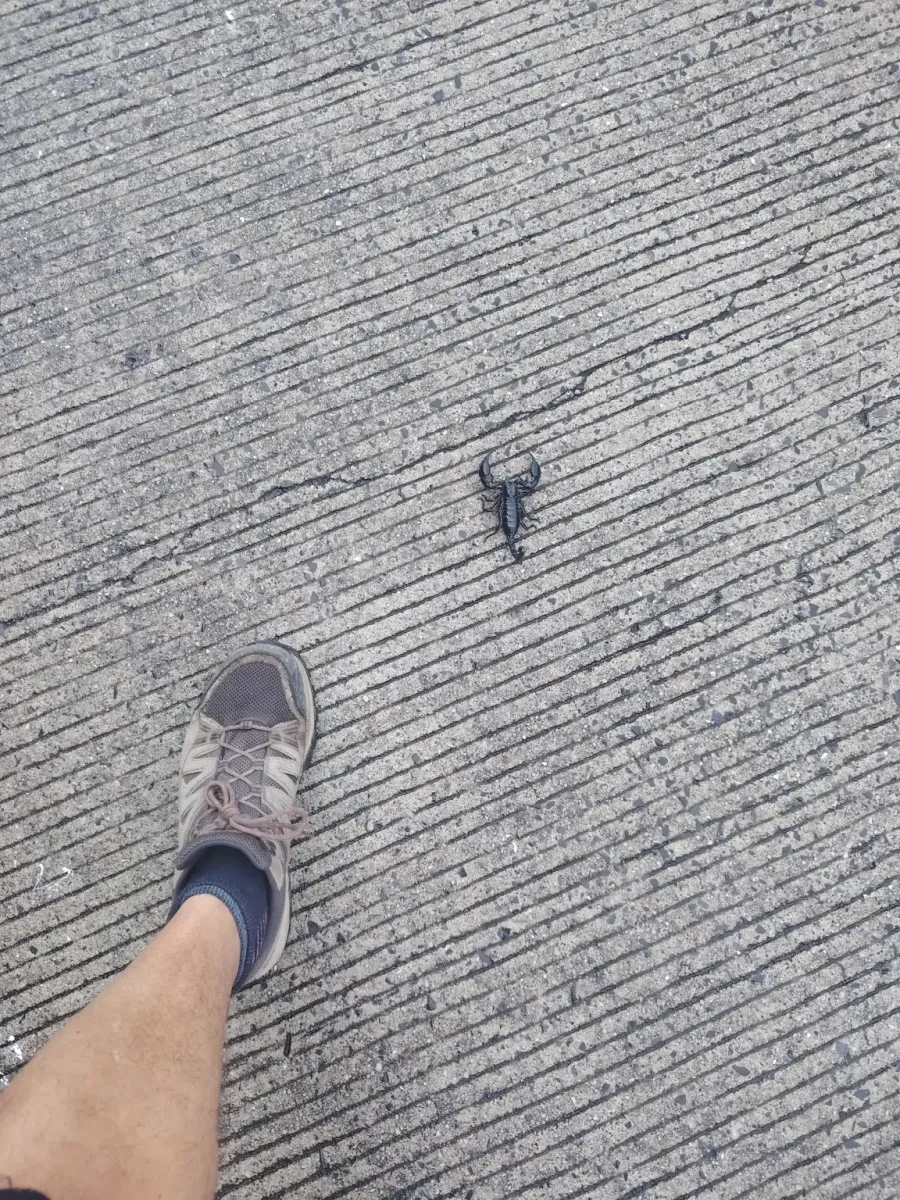 Furcsa volt, hogy élőlények nem mutatkoztak. Rengeteg százlábút láttam, pár békésen legelésző bivalyt és néhány madarat. Ezenkívül csak egy gyönyörű fekete skorpióval találkoztam az úton. Semmi más nem akart ma látni engem.