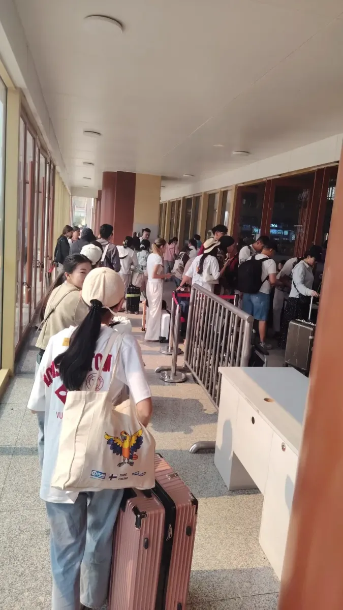 Az épületbe csak úgy lehet bejutni, ha bemutatod az érvényes jegyedet. Több hivatalnok ül asztalok mögött a főbejáratnál, így jegy nélkül esélytelen a váróterembe kerülni. Amikor megérkeztünk, egy nagyon hosszú sorba álltunk be, hogy ezen az első ellenőrző ponton átjussunk.