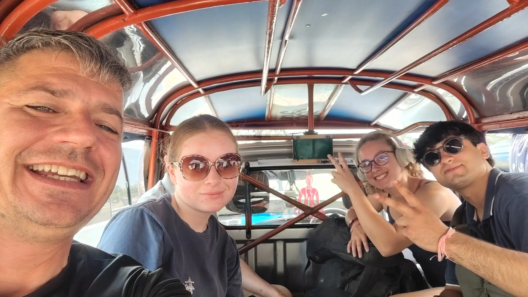 Hat nappal azután, hogy elbúcsúztunk egymástól az út újra összehozta a motoros csapat 80%-át. Három fiatal Van Viengből utazott Vientiánba, pont ezen a vonaton.
